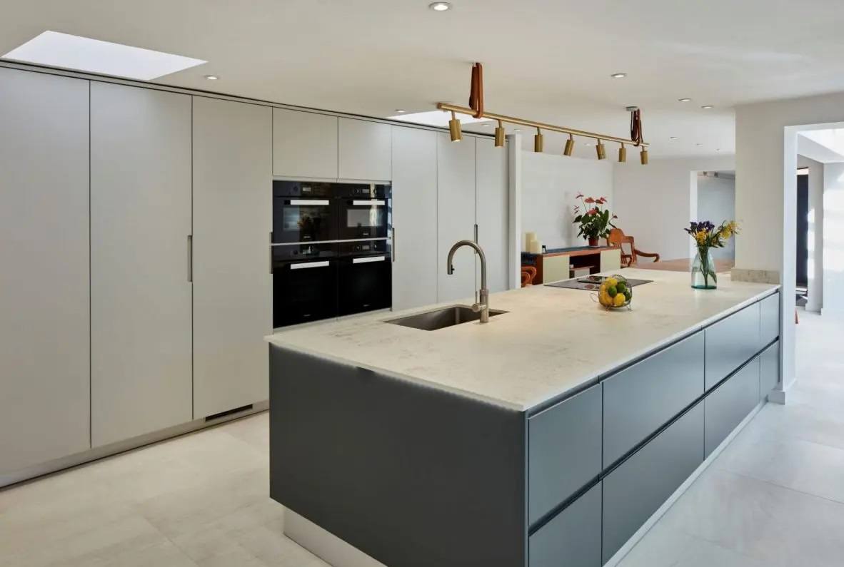 De nuevo si tenemos espacio, nada como elegir algo como lo que vemos a continuación: una cocina equipada con una amplia superficie integrada , que cubre casi toda la longitud de la propia cocina, permitiendo así al propietario tener siempre un punto de apoyo en cualquier punto del entorno. Parece el mostrador de un bar ultramoderno al que solo le falten los taburetes.