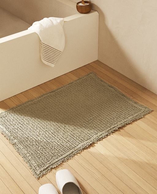 No nos olvidamos de las que son propuestas de Zara Home en lo que respecta a alfombras para el baño. Para estas encontramos modelos de lo más variados entre los que destaca la alfombra de baño de algodón que podemos comprar en colores neutros o en verde.