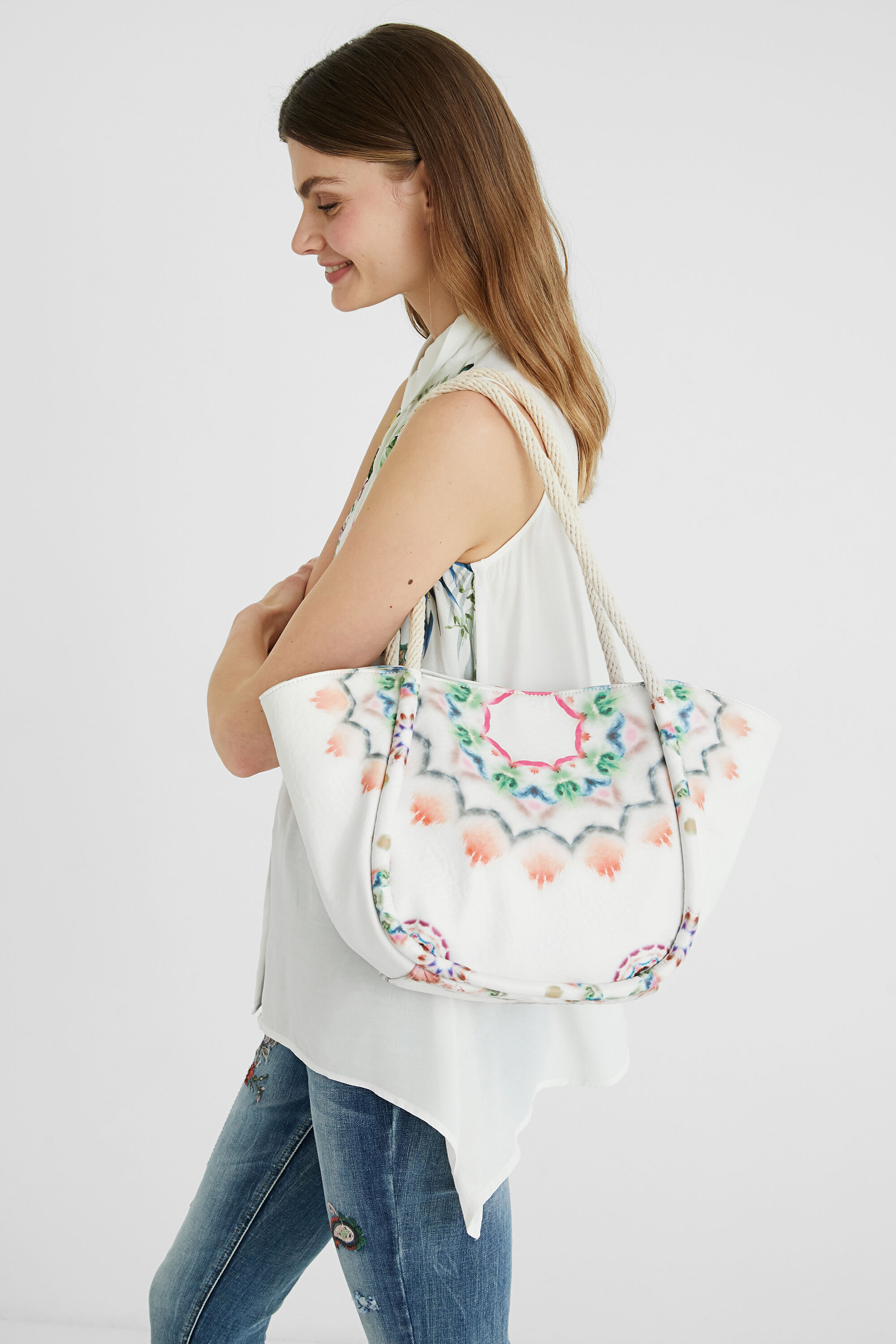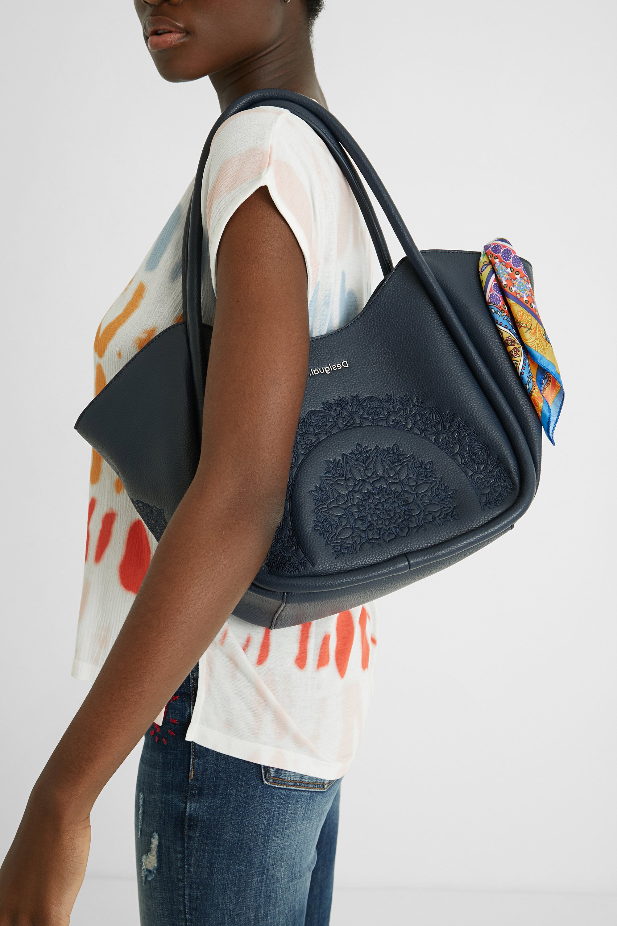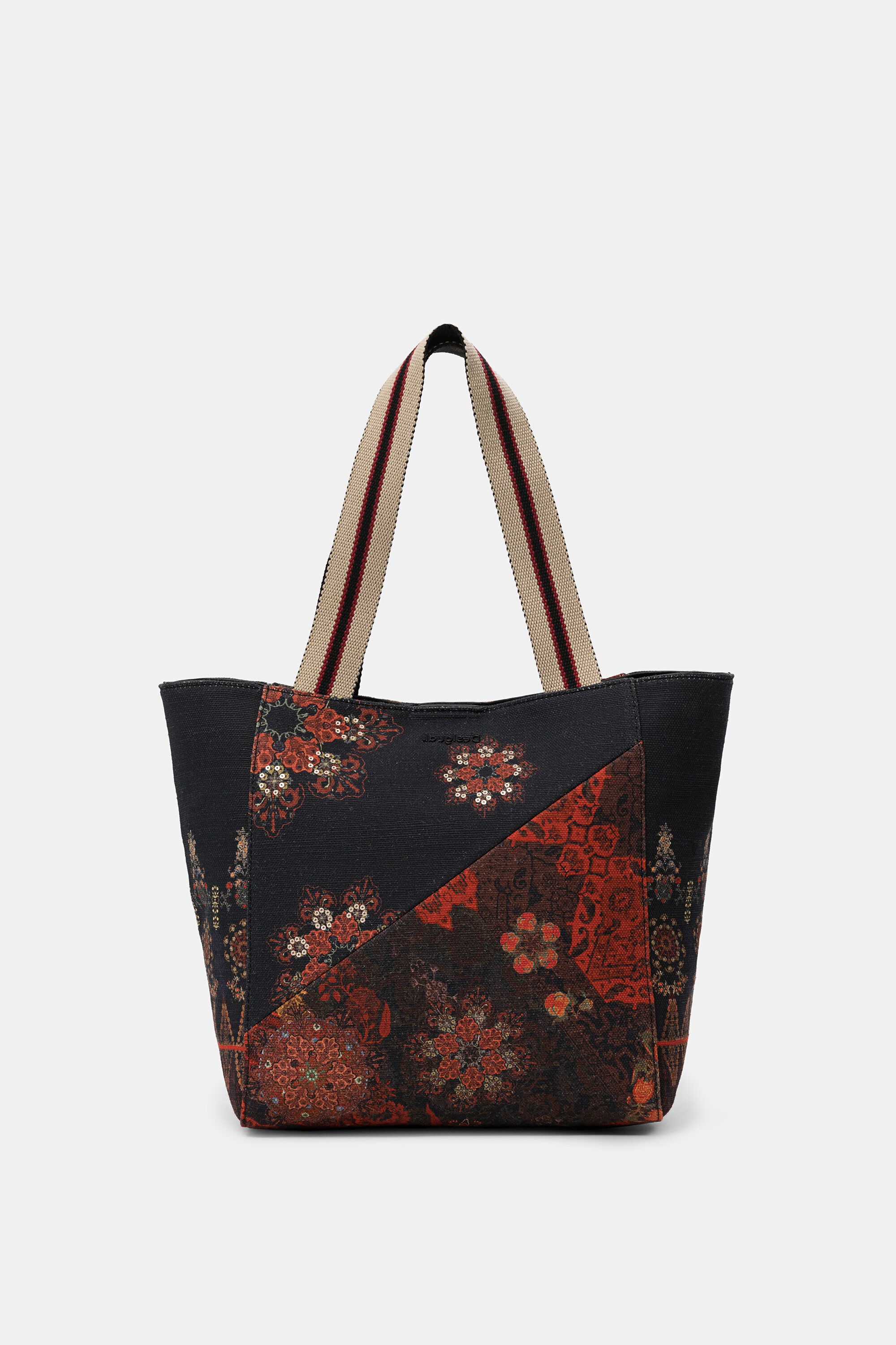 La «shopping bag» o bolso shopper es también uno de los modelos dentro del catálogo de bolsos Desigual de que no podéis dejar escapar. Tenemos diseños para todos los gustos tal y como podemos ver a continuación, con bolsos que son reversibles «3 en 1», el bolso shopper con detalles de estampado indonesio, el modelo con diseño «boho» «2 en 1» o el bolso llamativo en color fucsia con logo de Desigual.