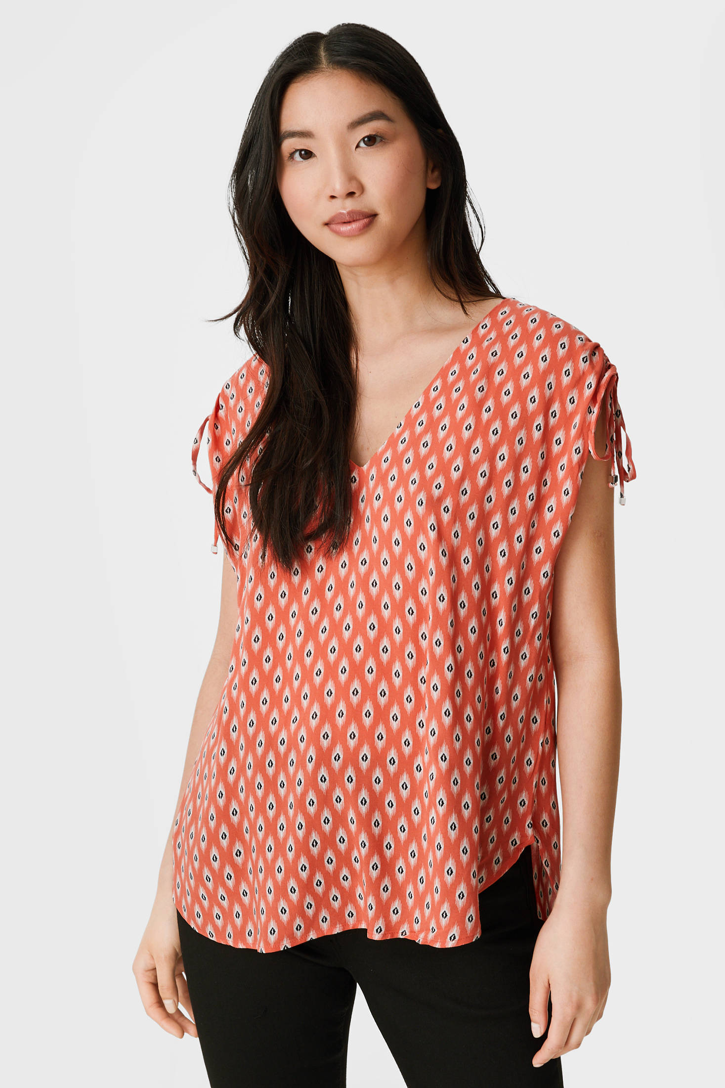Dentro de las rebajas de C&A para verano podemos elegir comprar algunas de las blusas de la firma que apuesta además por tejidos orgánicos, con diseños que son variados, como la blusa en blanco, la blusa en azul o la de color naranja con micro estampado.