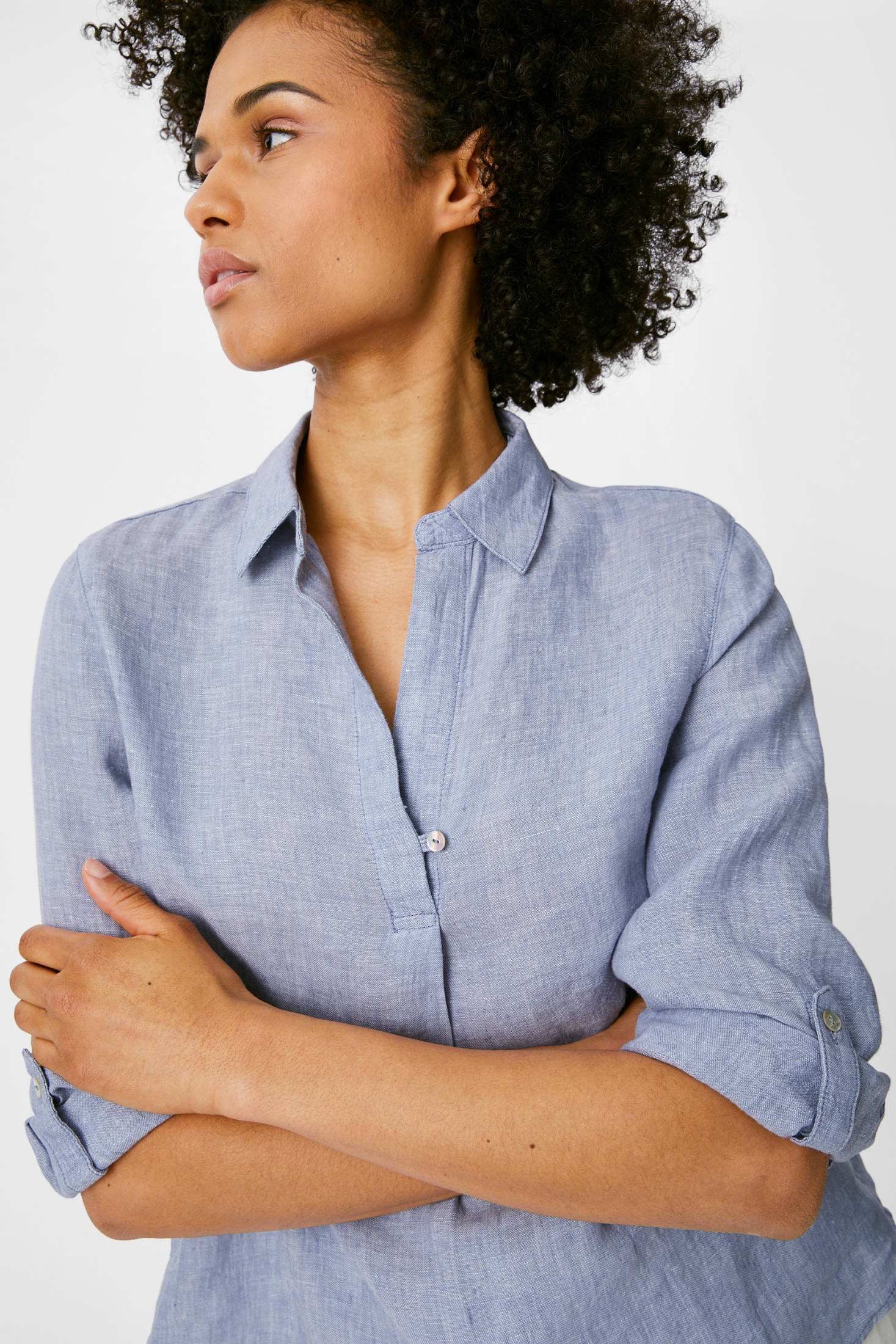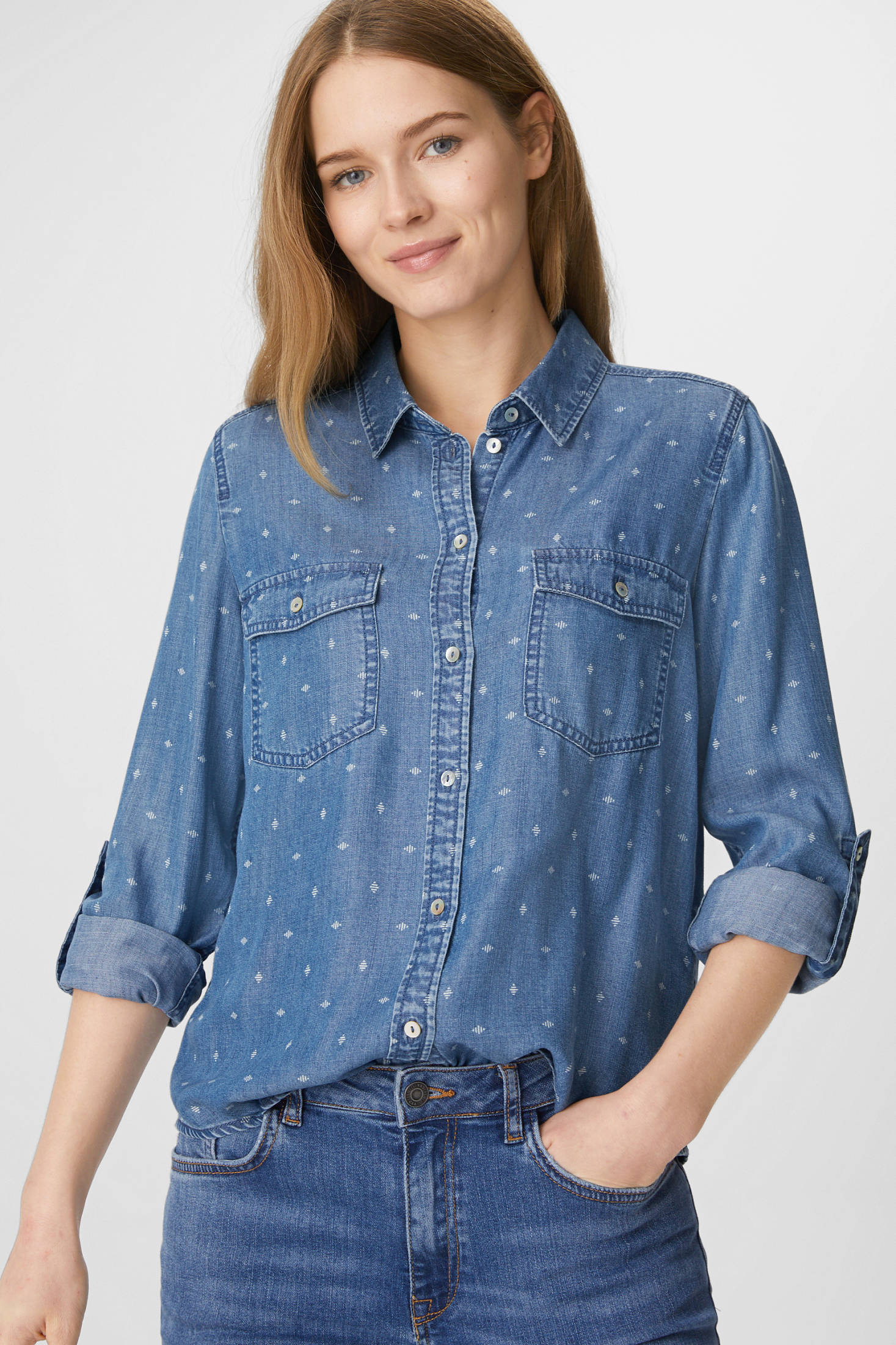 Blusas y camisetas son también protagonistas dentro del Catálogo C&A para Mujer Otoño Invierno con modelos que marcan tendencia tal y como son las blusas de lino o camisas en color azul y negro o las que son estampadas.