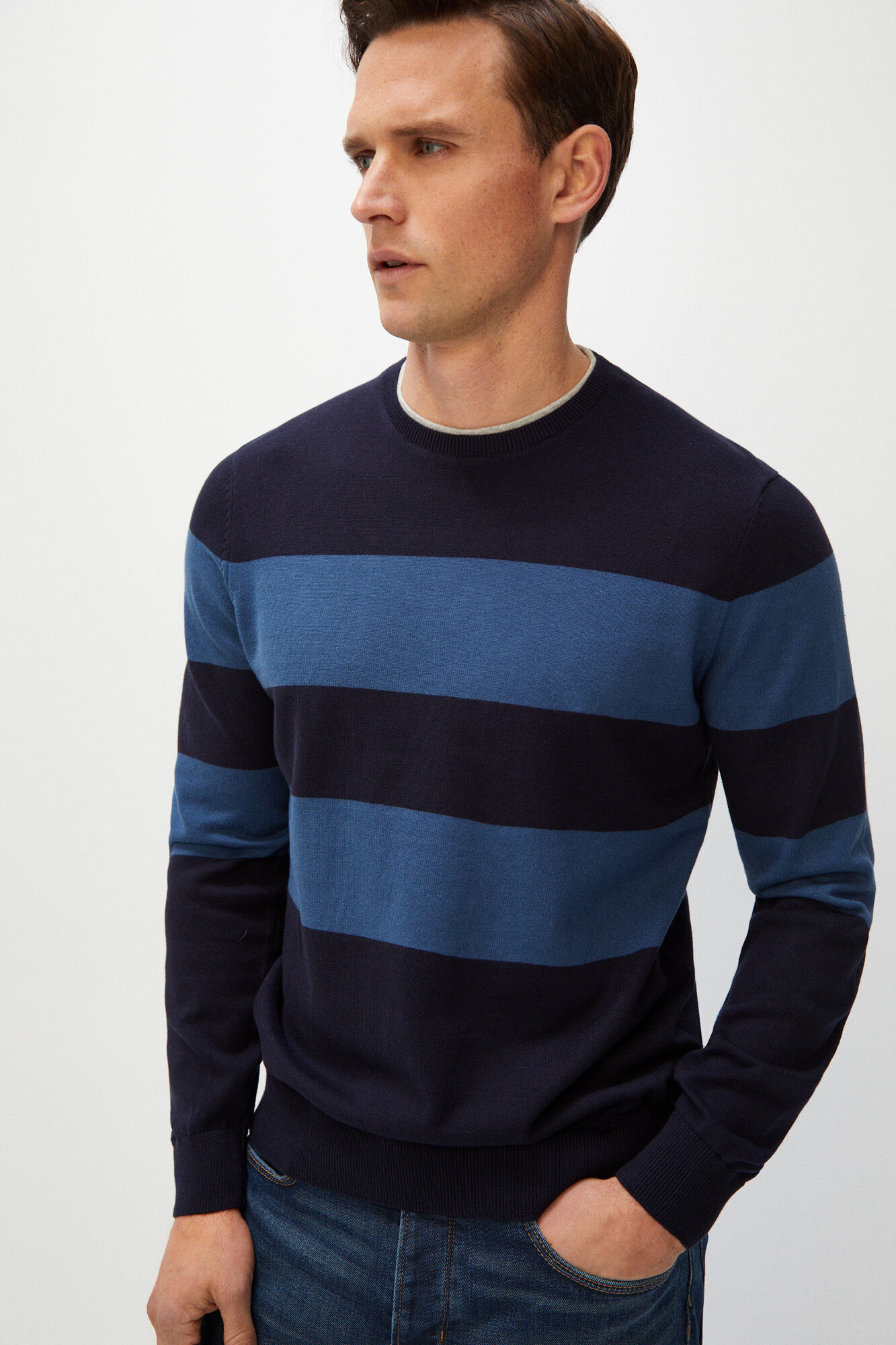Los jerséis son también protagonistas dentro del catálogo Cortefiel para hombre Otoño Invierno con modelos de lo más variados como los jerséis clásicos con cuello redondo, aquellos de cuello de pico, o los que tienen cuello semicisne. Jerséis que se presentan además en algunos de los colores de moda esta temporada, como el azul, el verde o el marrón o los que tienen estampado de rayas o están hecho de algodón orgánico.