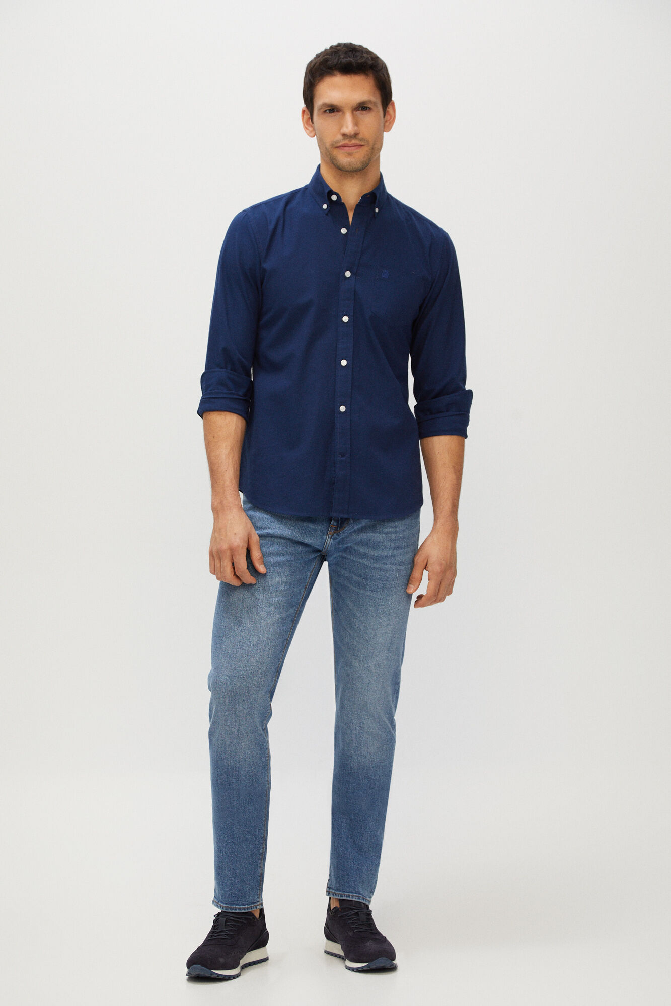 El catálogo de Cortefiel para hombre Otoño Invierno cuenta también con muchas propuestas de camisas de manga larga, con diseños que resultan básicos y también, clásicos. Camisas que se presentan en diseño Oxford, de algodón orgánico en colores como el blanco, el azul de estilo «denim» o también, el rosa o el lila, con tejido anti manchas.