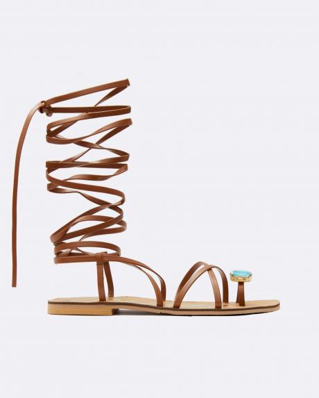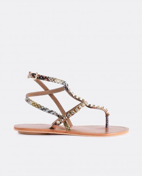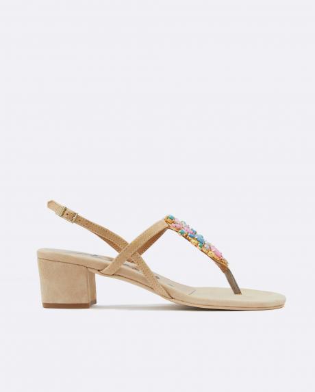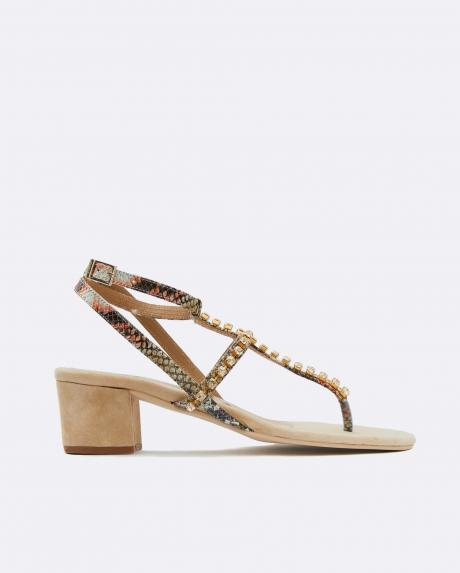 Las sandalias planas o con tacón bajo, que destacan por sus tiras llenas de brillantes o de pedrería.