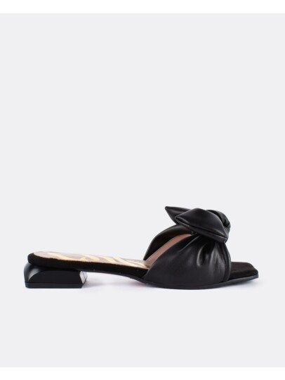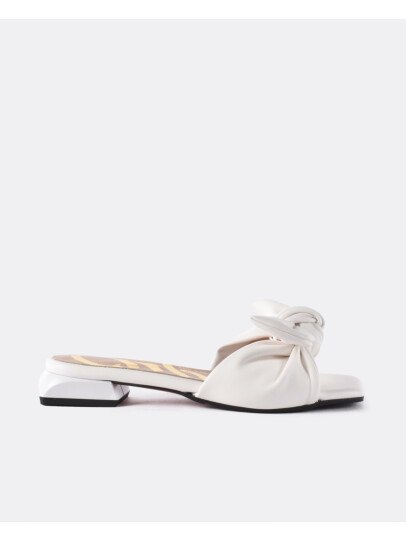 La sandalias que son del tipo zueco y planas con detalle de lazada en color blanco o en color negro.