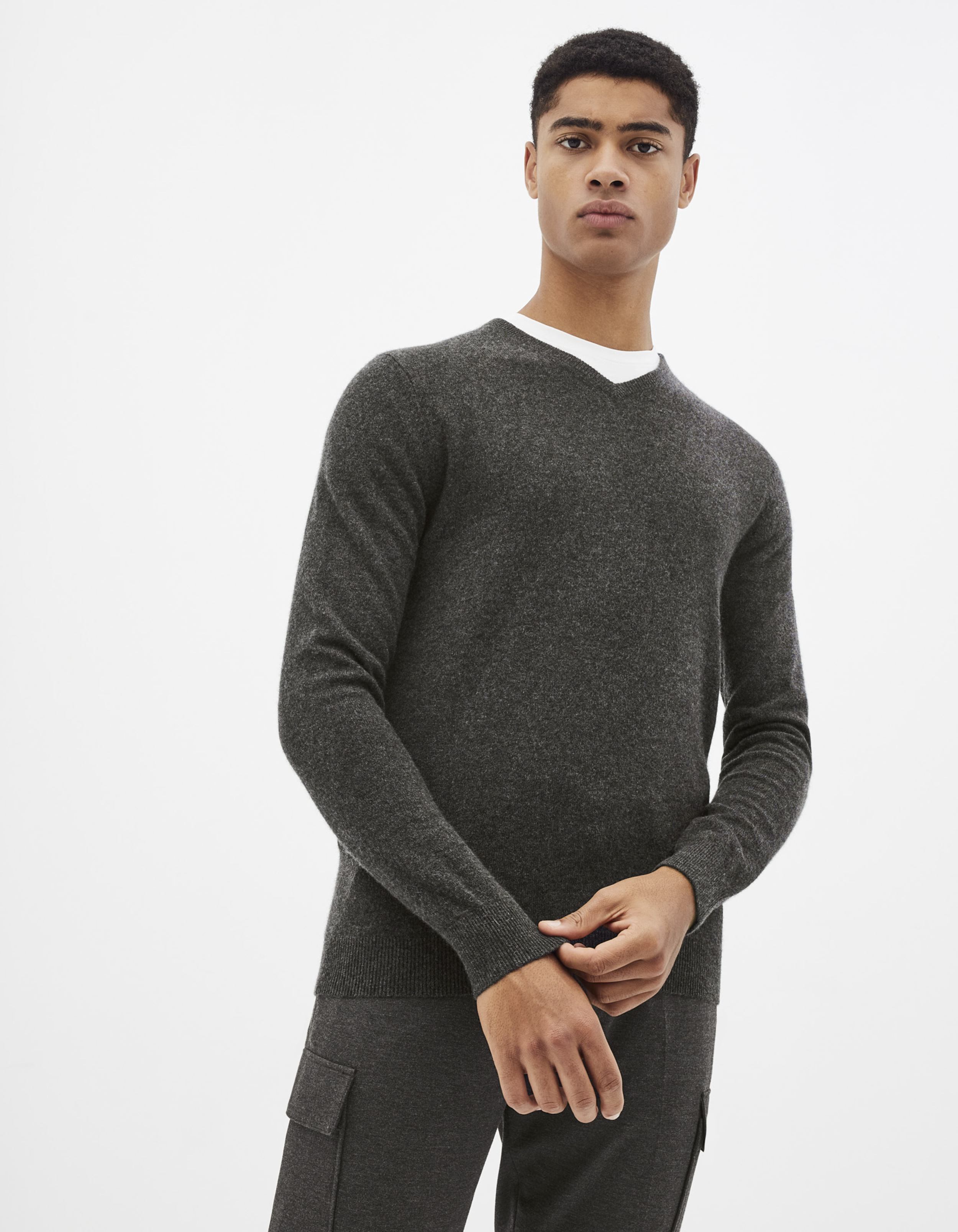 Destacan también los que son jerséis de cuello en V que además la firma presenta en colores como el azul, el gris o el amarillo.