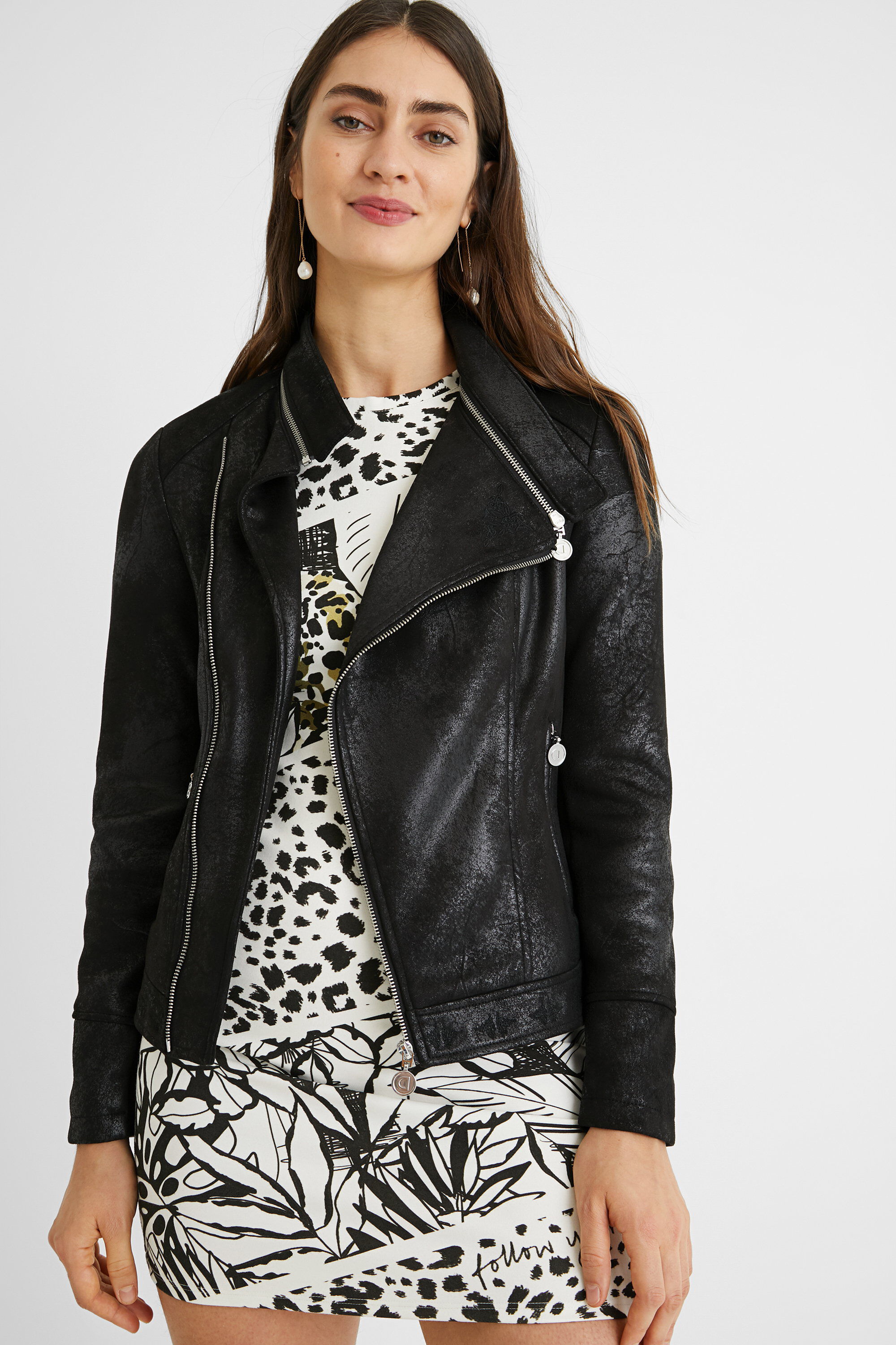 Y también encontramos propuestas de chaquetas del tipo biker. Un tipo de chaquetas muy presente en el Catálogo Desigual para mujer Otoño Invierno con diseños muy variados como estos que veis ahora.