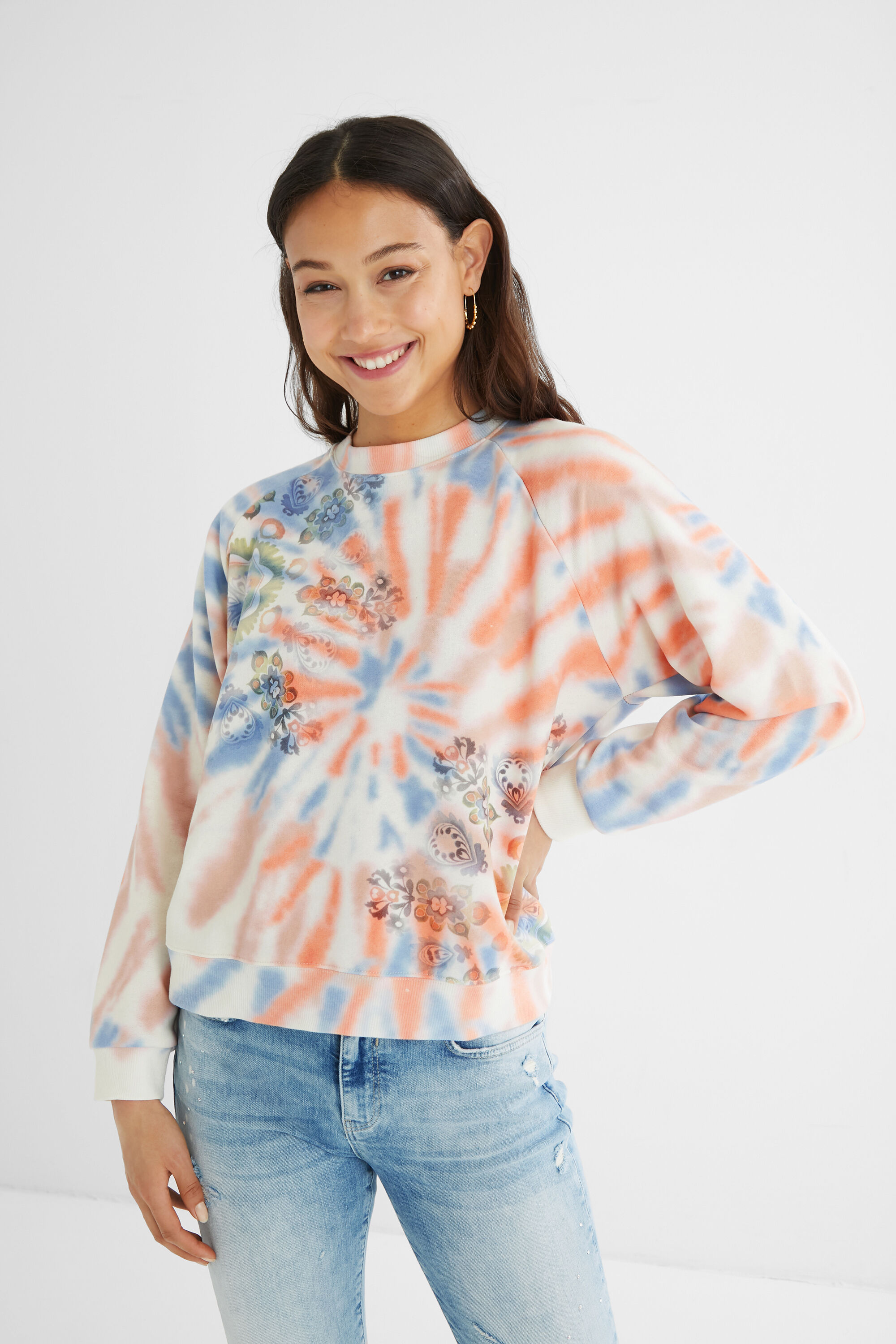 En cuanto a las sudaderas, el nuevo Catálogo Desigual para mujer Otoño Invierno se llena también de modelos diversos o variados entre los que destacan las sudadera chaqueta con capucha y ligero estampado, la sudadera que se presenta con estampado del tipo «tie-dye» tal y como marcan las últimas tendencias o la sudadera corta realizada con algodón reciclado.