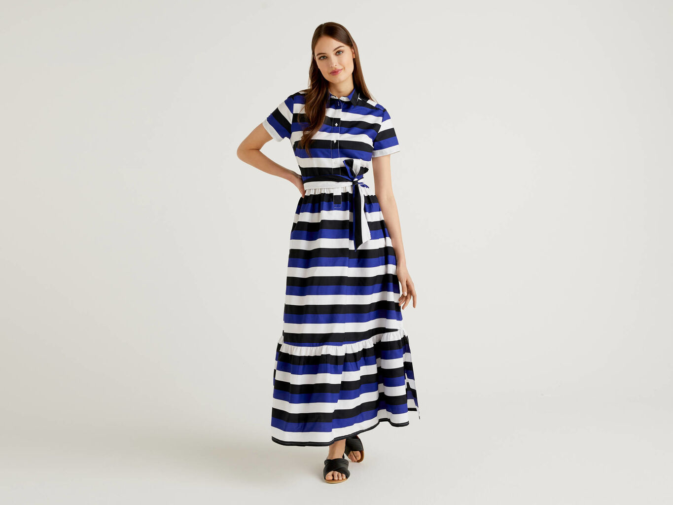 En cuanto al catálogo de mujer de United Colors of Benetton para mujer verano tenemos también una amplia variedad de propuestas entre las que destacan los vestidos cortos y midi con colores suaves o estampados de moda como el de rayas.