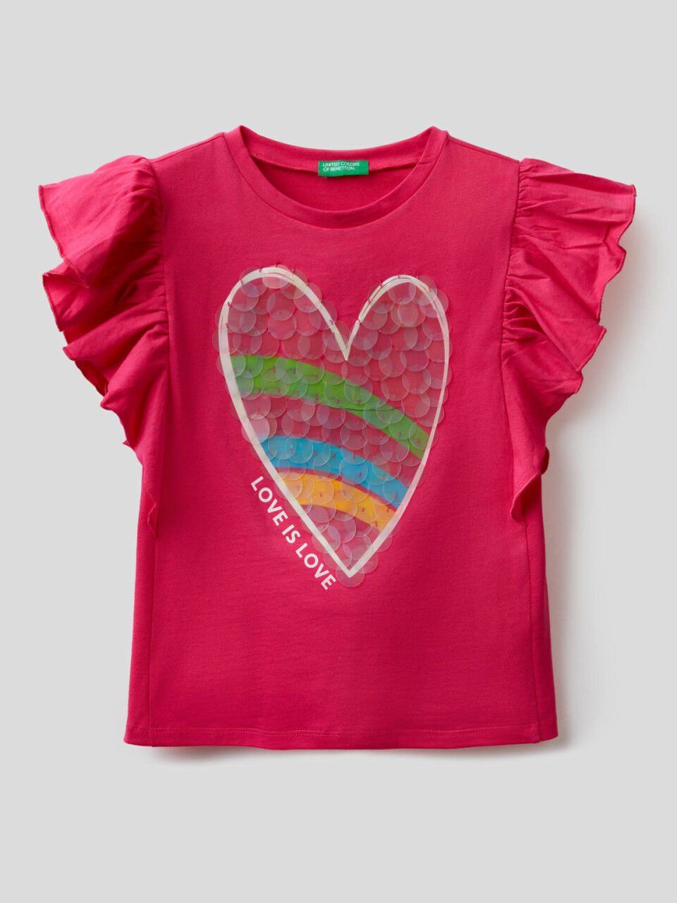 No nos olvidamos de las camisetas, llenas de estampados que siempre tienen mensajes positivos como siempre suele hacer Benetton o dibujos que encantarán a las niñas pequeñas.