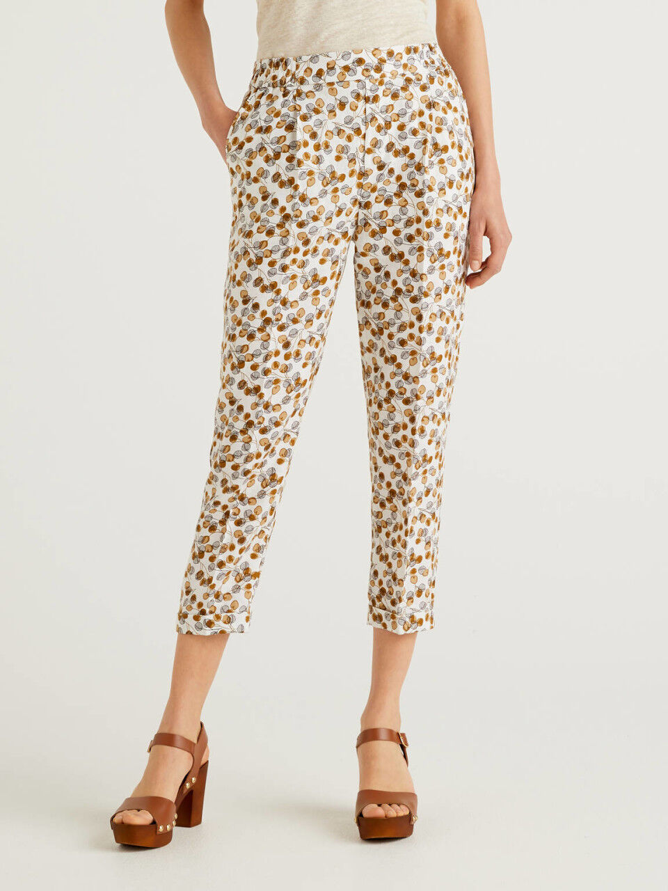 En cuanto a pantalones, Benetton apuesta por aquellos que cuentan con estampados de moda como el de flores, para diseños de lino, o también como no, las bermudas y pantalones cortos en colores como el azul, el verde o el blanco.