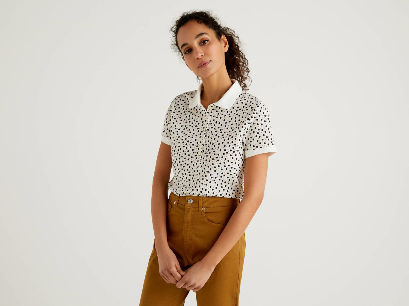 Junto a las camisetas, los polos también están presentes en este catálogo, en colores neutros o con bonitos estampados.