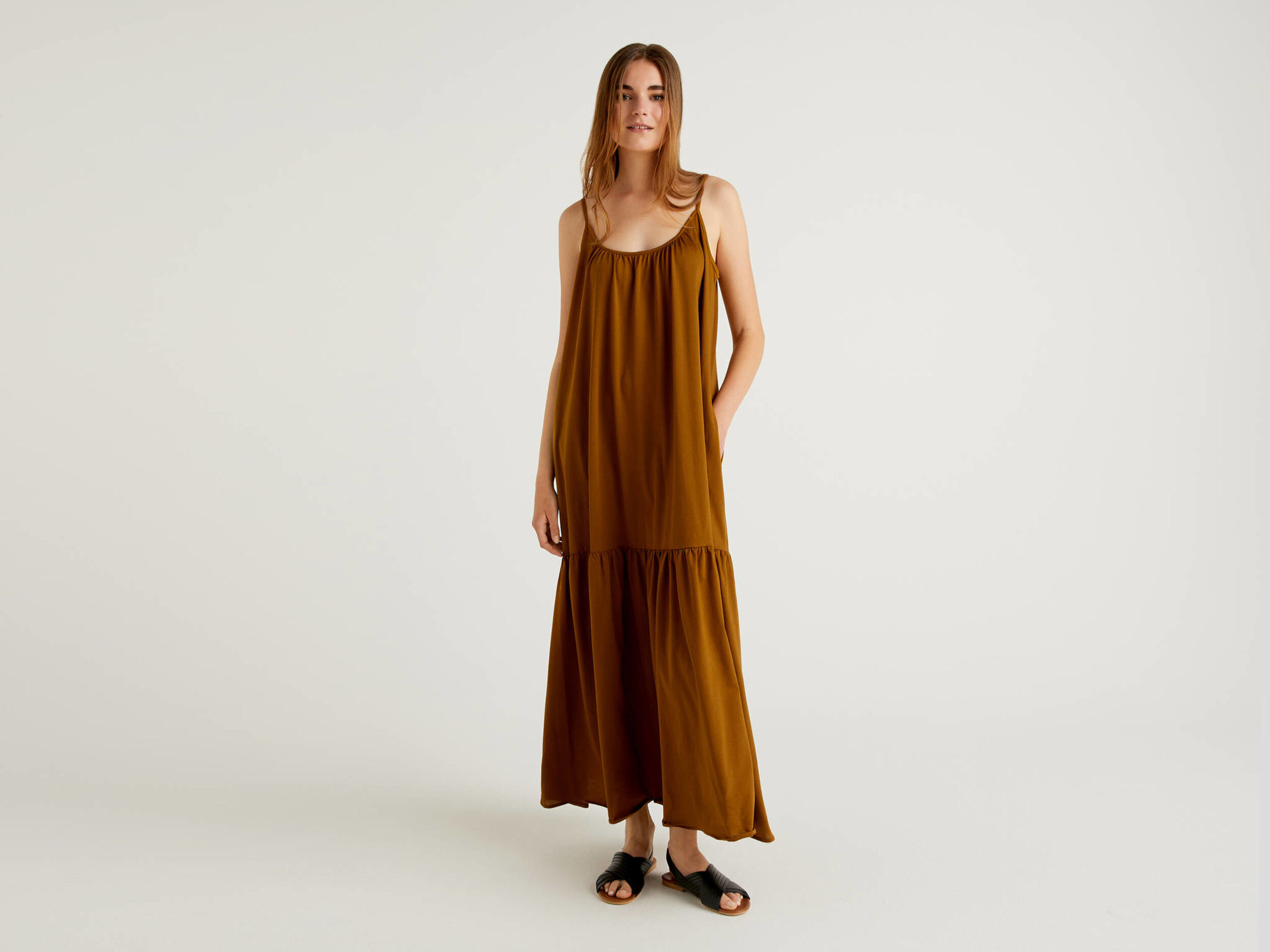 También los vestidos que son más largos, los llamados «maxivestidos» que arrasan esta temporada, con colores como el marrón o el negro y estampados de nuevo, como el de rayas.