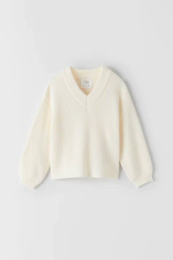Para las niñas, tenemos el mismo estilo de jersey aunque destacan como no, los modelos de jerséis con cuello de pico en color neutro o el jersey con detalle de volantes tal y como marcan las últimas tendencias.