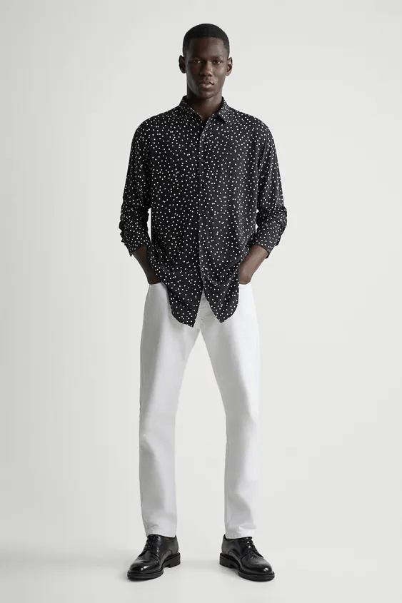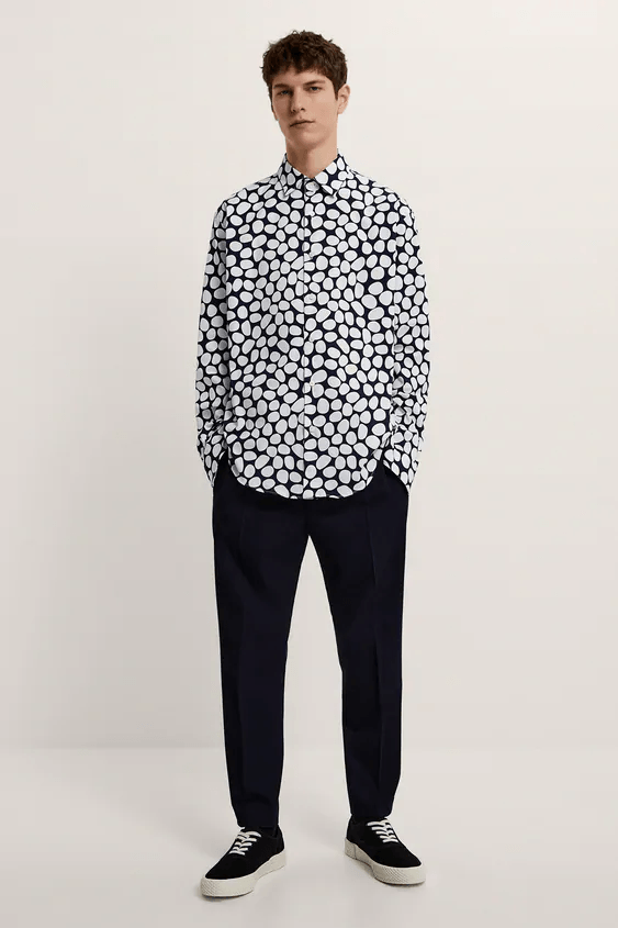 El Catálogo ZARA para hombre Otoño Invierno cuenta también con las que son camisas esenciales para la nueva temporada. Modelos de camisas para todo tipo de ocasiones, tal y como son la camisa de diseño «regular fit» en colores como el verde, la camisa de estructura «oxford» y con estampado de rayas o también como no, las camisas de estampados llamativos que marcan tendencia tal y como son los lunares.
