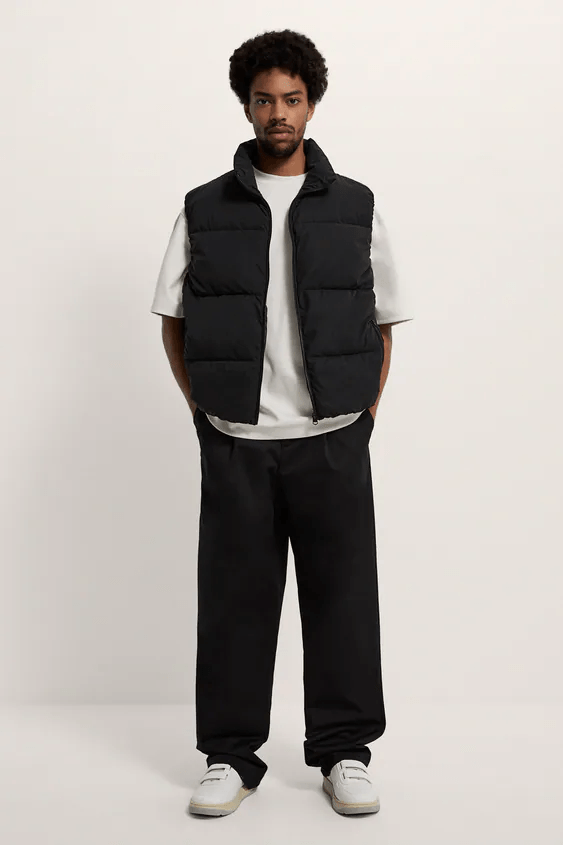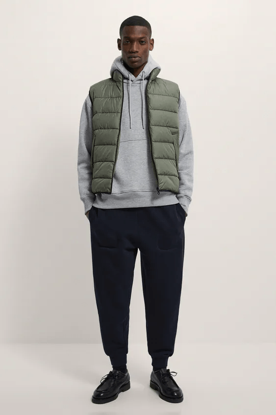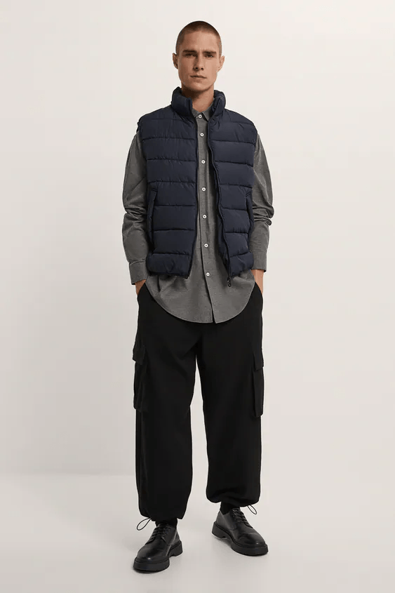 También dentro del Catálogo ZARA para hombre Otoño Invierno nos encontramos con muchas propuestas de chalecos acolchados, en colores esenciales como el verde o el negro. Una prenda que se ha convertido en tendencia y que podéis combinar con vuestros «looks» más «comfy» de otoño invierno.