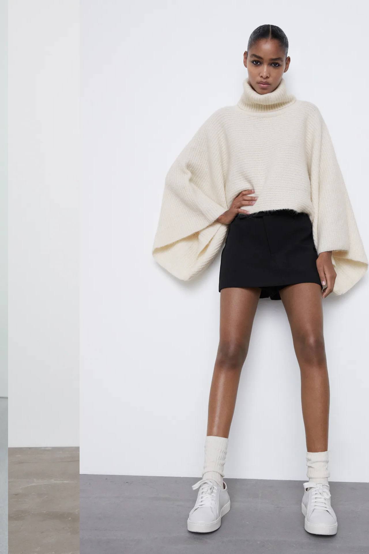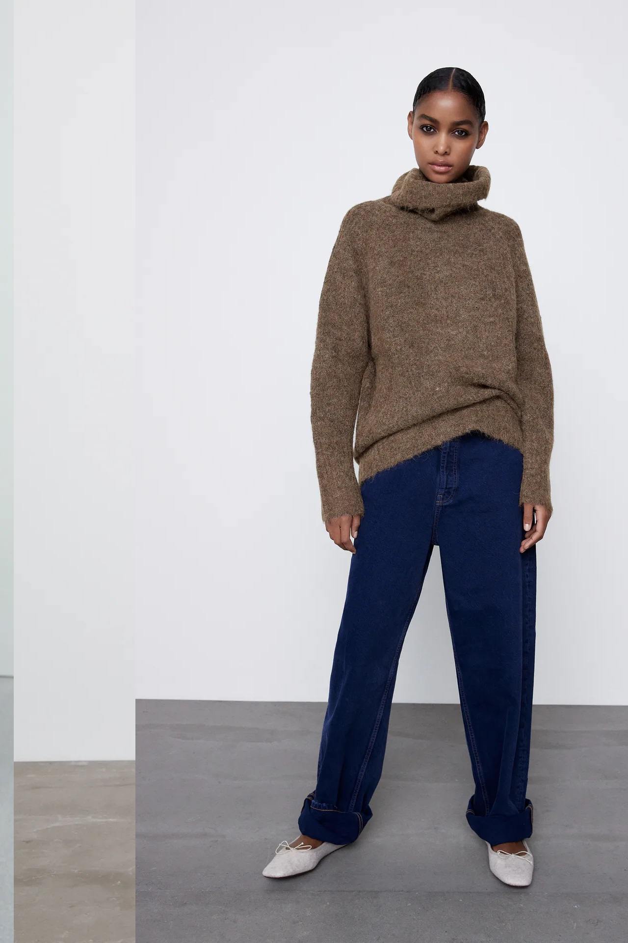 Los jerséis no pueden faltar tampoco en el Catálogo ZARA para mujer Otoño Invierno con modelos de lo más variados entre los que destacan aquellos que son de cuello vuelto tanto de punto evasé como de lana de alpaca y en algunos de los colores de moda como el verde claro, el blanco o el marrón y con diseños que se decantan por el estilo «oversize».