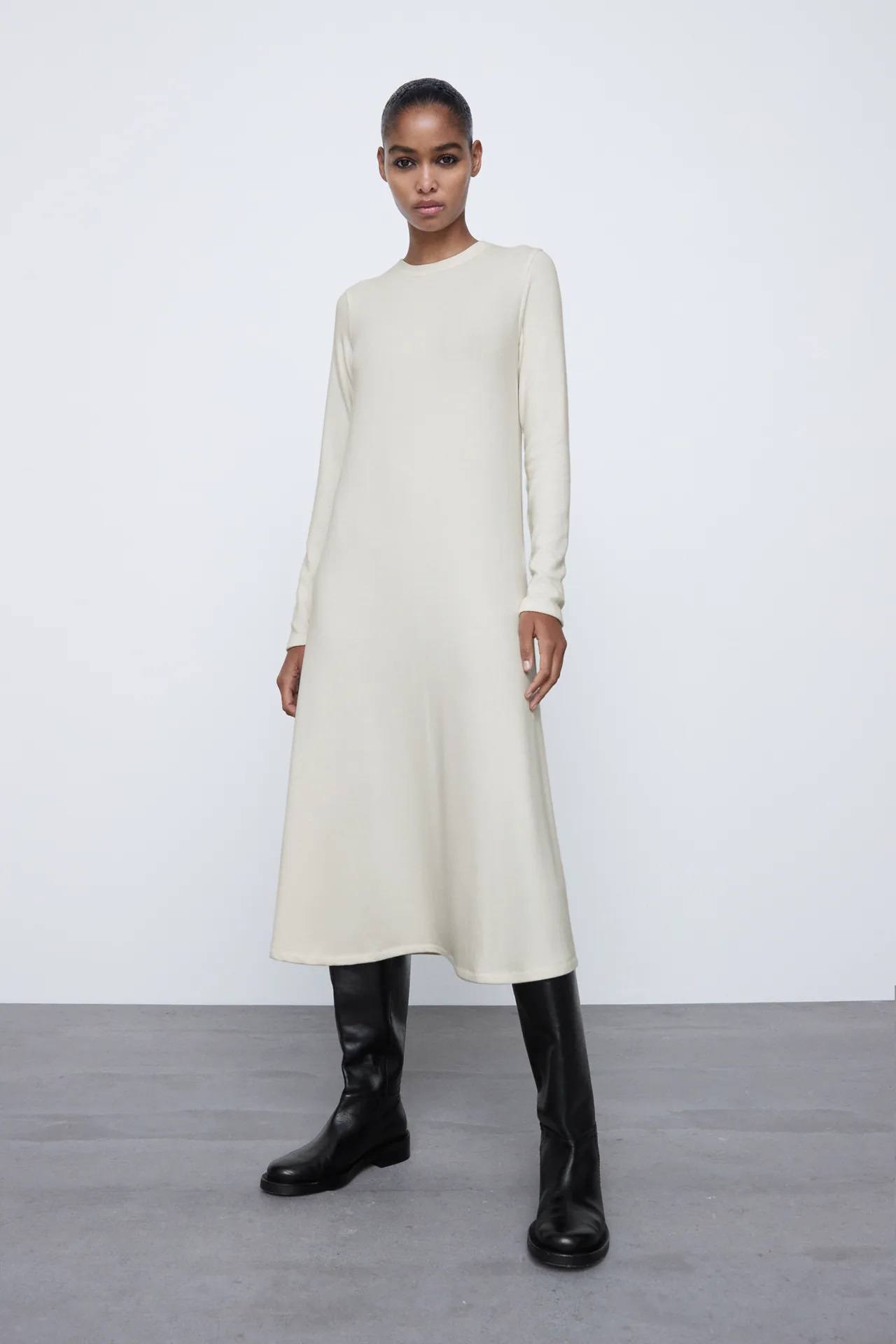 No nos olvidamos de los vestidos que son también protagonistas dentro del Catálogo ZARA para mujer Otoño Invierno dado que encontramos muchas propuestas entre las que destacan de manera especial los vestidos de punto que se presentan principalmente en diseño entallado, en colores básicos como el negro o las tonalidades neutras tanto para un diseño largo como corto.