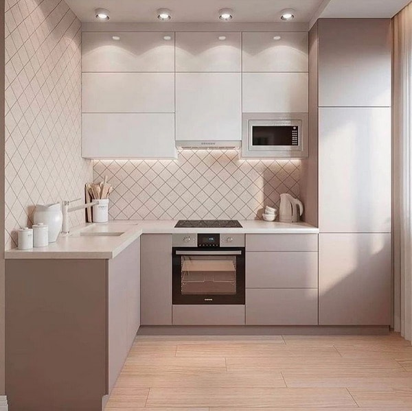Si pasas mucho tiempo en la cocina y deseas un espacio cómodo y moderno, las cocinas modernas en forma de L son la solución adecuada para ti . Considerada por muchos como el tipo de cocina más «ergonómico», se compone de muebles dispuestos de manera que las actividades diarias sean menos fatigosas. Cada espacio es simple y funcional, dedicado a una operación específica: preparación, cocción y lavado. Se agradece mucho la presencia del horno no debajo de la encimera sino en una columna separada, colocada a una altura fácil.