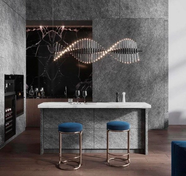 Las tendencias de iluminación de cocinas para ven el renovado éxito de materiales como el metal y el vidrio. Las lámparas tienen diseños inusuales y múltiples colores. Los más jóvenes apreciarán los sistemas de iluminación y candelabros con tonalidades frescas y formas divertidas, mientras que los que prefieran un estilo más clásico pueden optar por elementos de colores austeros pero modernos.