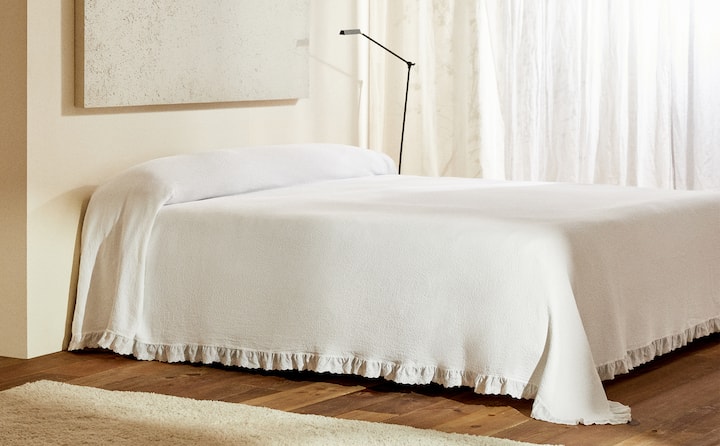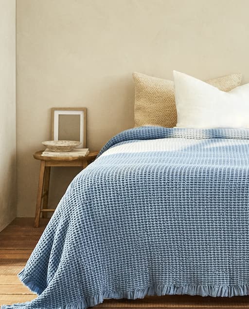 Si buscas una colcha con estilo para tu cama debes saber que no todas son modelos que podemos usar en verano, sino que también hay colchas para la temporada de otoño-invierno, de modo que hemos hecho un repaso a las presente en el nuevo catálogo de Zara Home donde tenéis infinidad de modelos entre los que destaca por ejemplo la colcha de diseño Waffle con volantes, un estilo de colcha con un aire muy vintage que nos encanta y que la firma de Inditex presente en un color que marca tendencia tal y como es el azul.