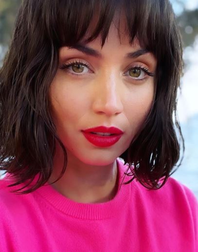 Otro truco para aquellas mujeres con cara redonda que quieren llevar un corte de pelo corto de la temporada Otoño Invierno es añadirle un flequillo. De esta manera enmarcamos mucho más la cara y nos crea una sensación de cara más cuadrada o alargada. En este caso, nos encanta de desenfadado lo lleva Ana de Armas.