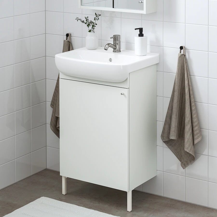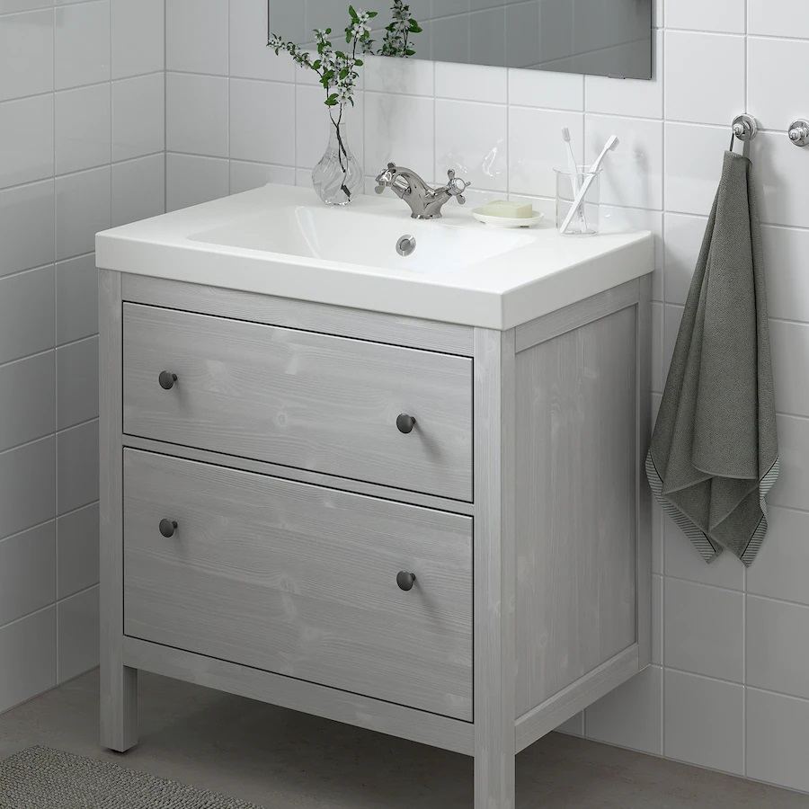 El modelo de mueble tocador con lavabo Nysjon/ Björkän es un mueble que se distingue por ser de dimensiones pequeñas de modo que resulta el mejor para un baño pequeño.