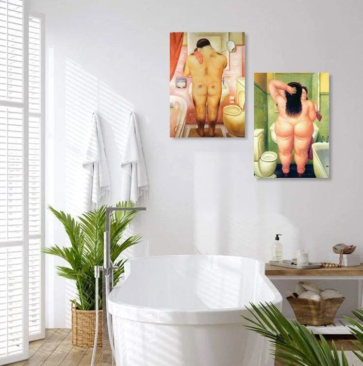 Por último, seguro que no podíamos olvidar mostrarte cómo decorar un baño con un estilo clásico , en este caso puedes optar por cuadros que se inspiran en composiciones florales, obras atemporales como las de Botero, o velas parpadeantes.