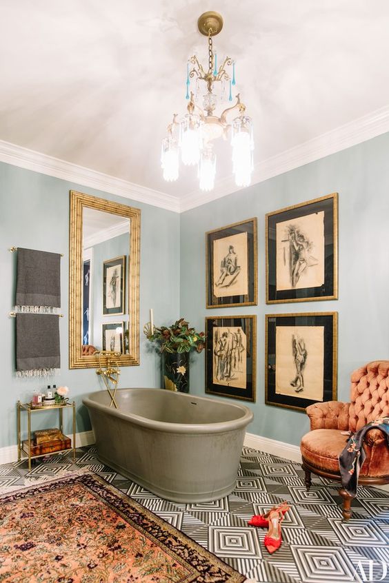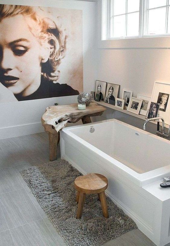 Como ya hemos visto en las fotos anteriores, si el baño tiene un estilo retro , los cuadros que representan los paisajes son los más adecuados para ayudar a mantener el ambiente elegido. El marco es fundamental . Puede ser dorado o plateado, con un corte clásico y elegante.