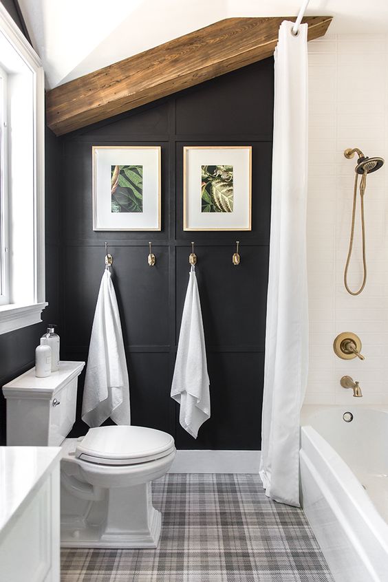 La elección de los colores también es fundamental para crear un ambiente armonioso. Si con un baño en el que predomina el color blanco, puedes excederte con estampados y colores llamativos, en el amueblamiento de un baño negro no todo está permitido. En este caso es importante romper el color oscuro con adornos, pero es mejor utilizar estampados que mantengan las mismas tonalidades: blanco o negro.