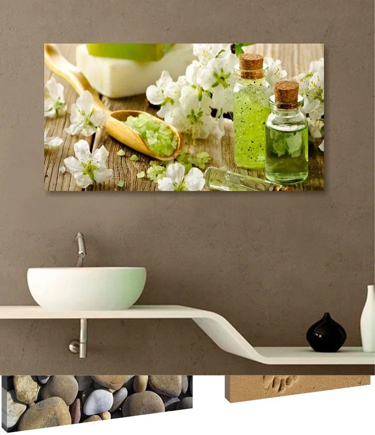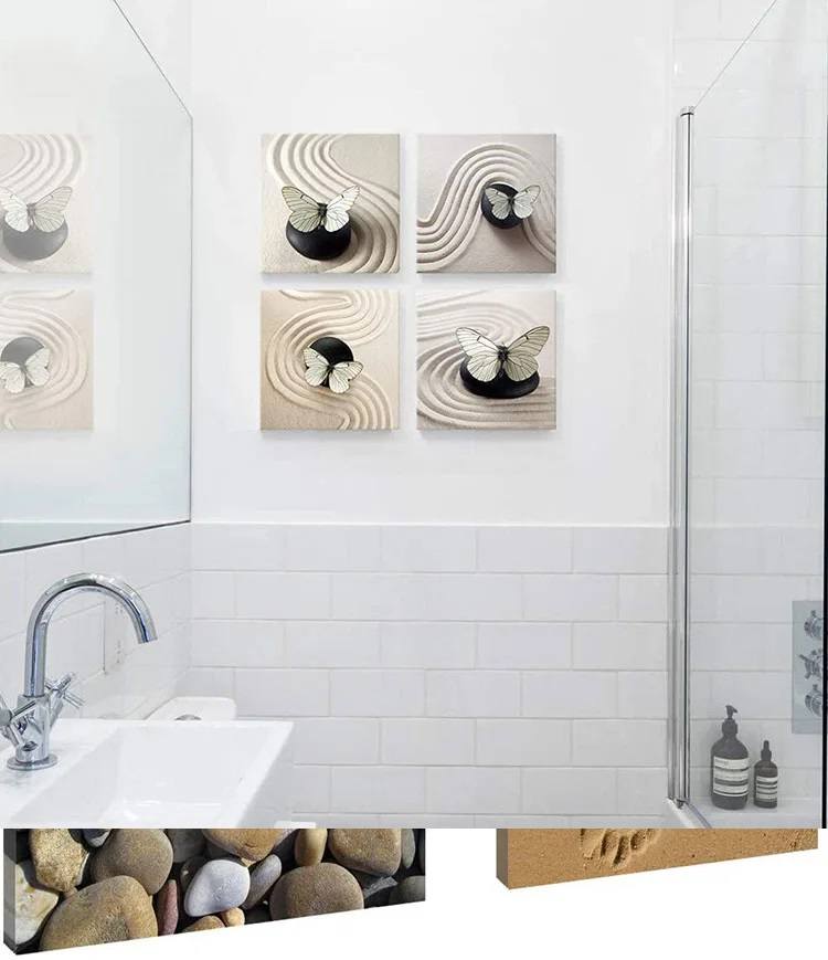 Comencemos con una serie de fotos de lienzos y láminas para baños modernos , estos espacios se caracterizan por líneas simples y extremadamente funcionales, por lo que un toque de color y vivacidad será perfecto para propiciar un despertar lleno de energía o para relajarse al final de un trabajo. día. Los cuadros que te mostramos podrían darle a tu baño el aspecto de un centro de bienestar, por lo que la combinación con velas aromáticas será perfecta. Todos los cuadros que vas a ver en este post, por cierto, se pueden comprar en Amazon.