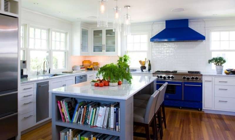 O podemos también decantarnos por una cocina americana que tenga colores vivos tal y como es el caso del azul.