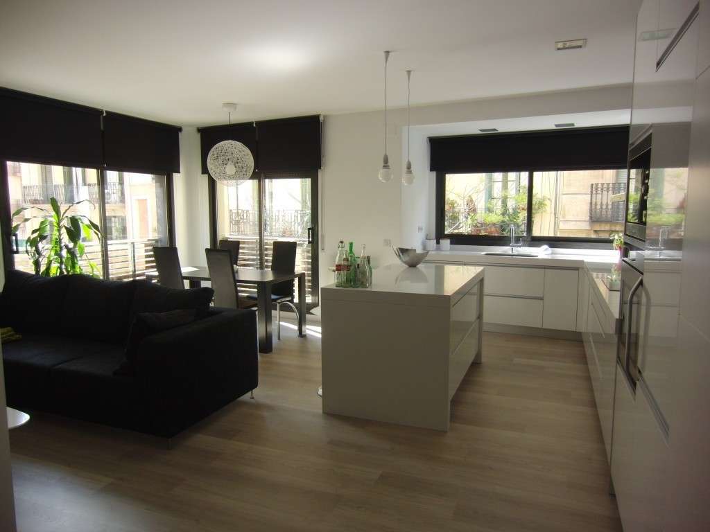 En esta otra imagen nos encontramos con una bonita cocina americana con un diseño algo más clásico.