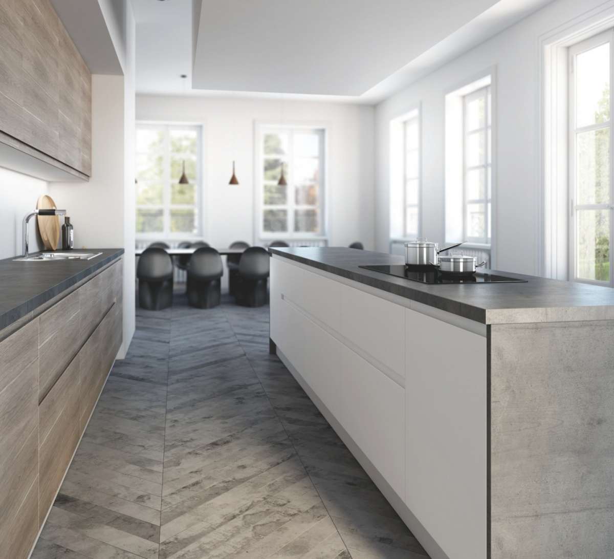 Y dado que este tipo de cocina es mejor que sea grande, nada como elegir también un diseño como esta otra cocina, con una isla de gran longitud.