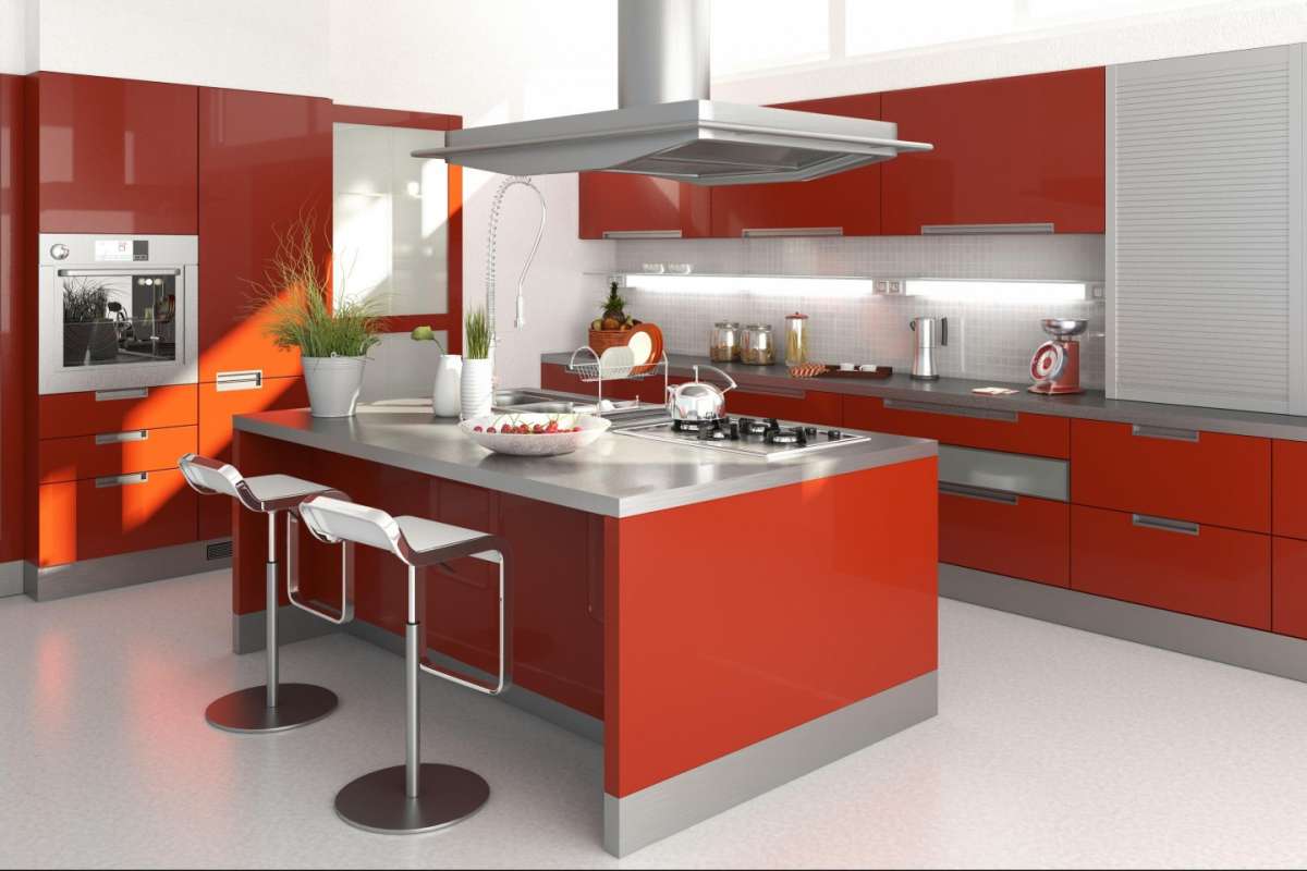 Si lo que te gustan son los tonos más llamativos para tu cocina americana, nada como elegir este por ejemplo, de color rojo.