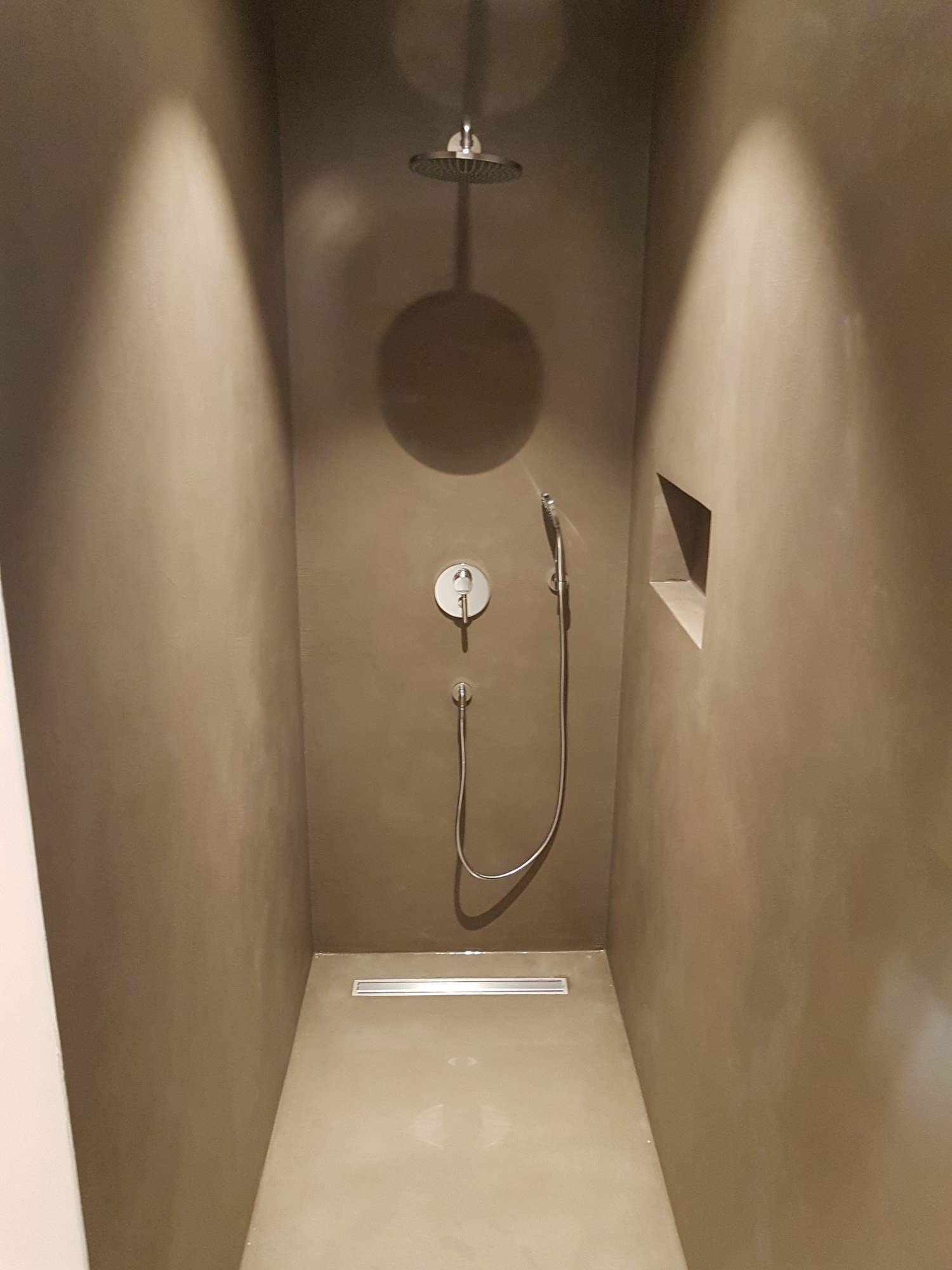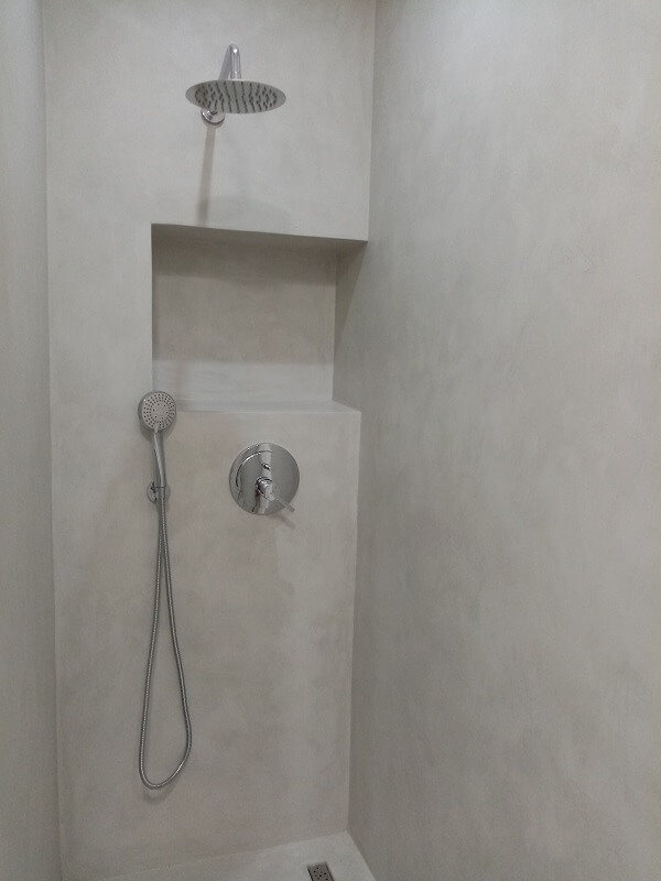 A menudo se elige materiales tradicionales para el revestimiento de baños: azulejos, paneles de azulejos o simplemente pintura. El microcemento da la posibilidad de obtener algo nuevo y original; es una alternativa para el baño o la ducha que se diferencia de las soluciones tradicionales y ahora obsoletas. En la imagen a continuación, una bonita ducha hecha de microcemento.