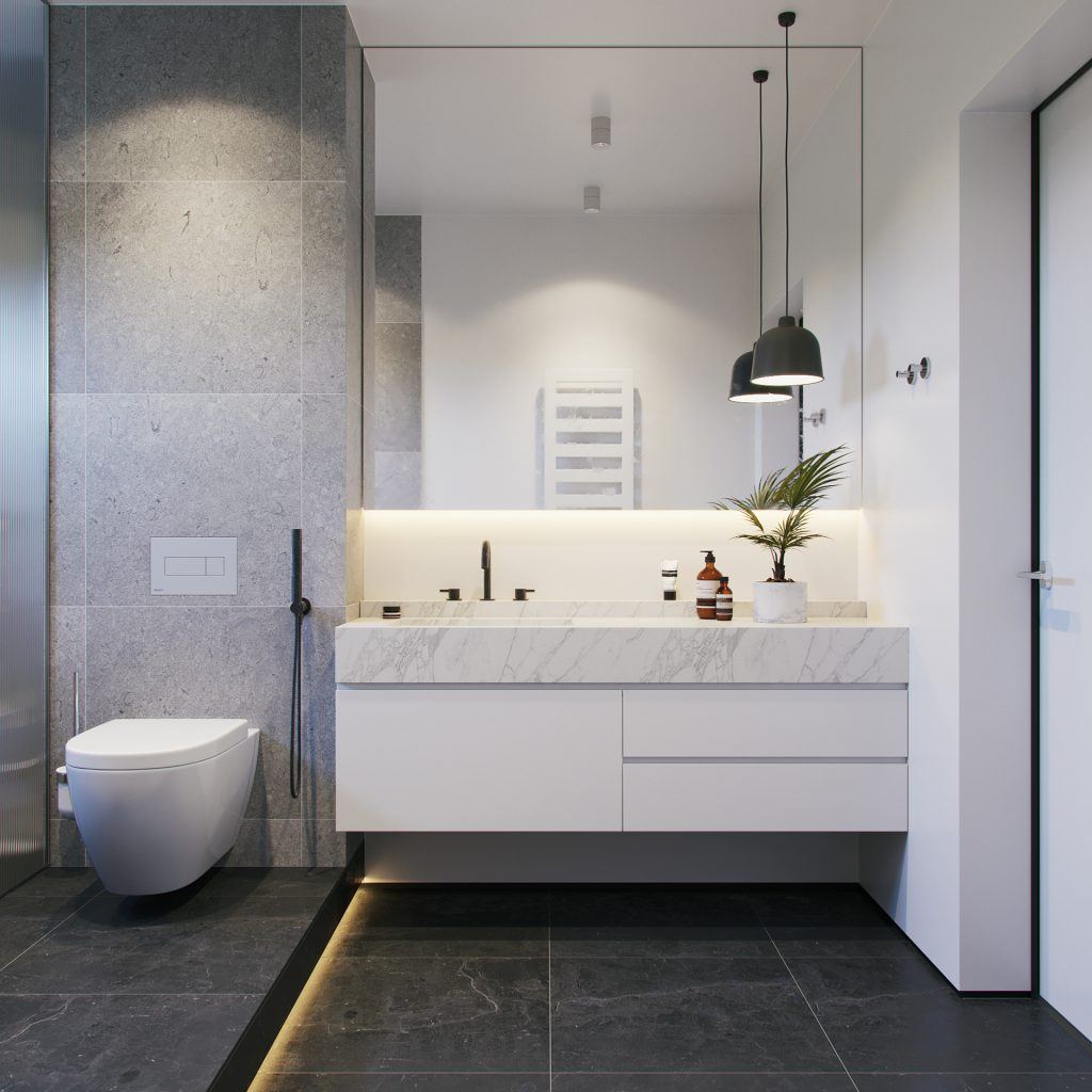 Baño pequeño para el que se crea un fondo que es más oscuro