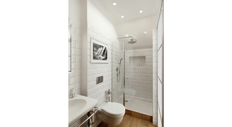 De este modo podemos elegir el blanco, como color principal para que nuestro baño se vea más grande y tenga más encanto, aplicando además ideas tan originales como la que veis arriba. Decoración en blanco y almacenamiento en nicho hecho con estantes a lo largo de la pared de la ducha, una buena idea para ahorrar espacio.