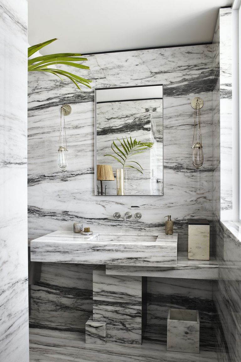 Si tienes un baño pequeño que además se distingue por ser estrecho, quizás la mejor elección de todas sea la de colocar revestimientos, como estos sobre las paredes, en los que aparecen líneas para de este modo jugar con las profundidades. Un tipo de revestimiento de este estilo, te permitirá crear un efecto en el que el baño es mucho más profundo de lo que es en realidad.