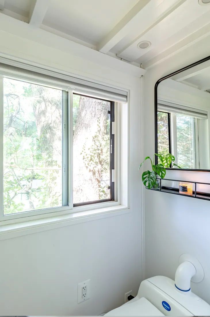 Baño con la bañera debajo de la ventana para ahorrar espacio