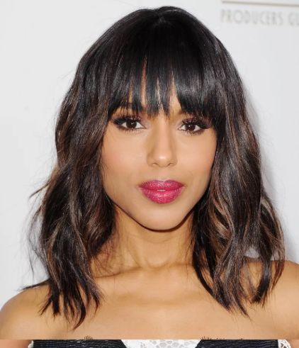 O puedes llevarlo también como la actriz Kerry Washington que apuesta también por un bob largo con flequillo algo más corto, recto aunque abierto.