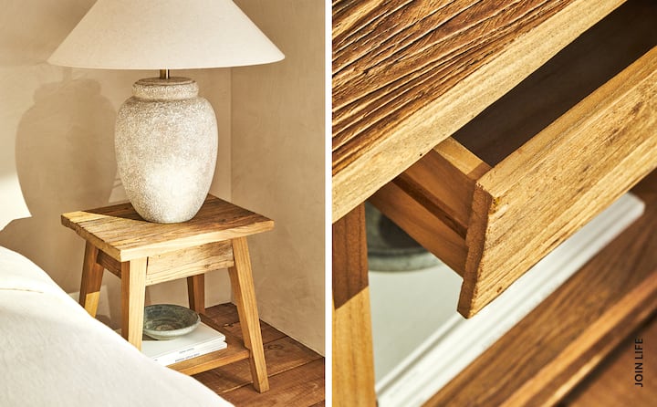 Si lo que buscas es sencillez para tu mesita de noche, nada como elegir entonces el modelo de madera del nuevo catálogo de Zara Home Otoño Invierno. Una mesita bastante rústica que además destaca porque se ha elaborado con madera reciclada.