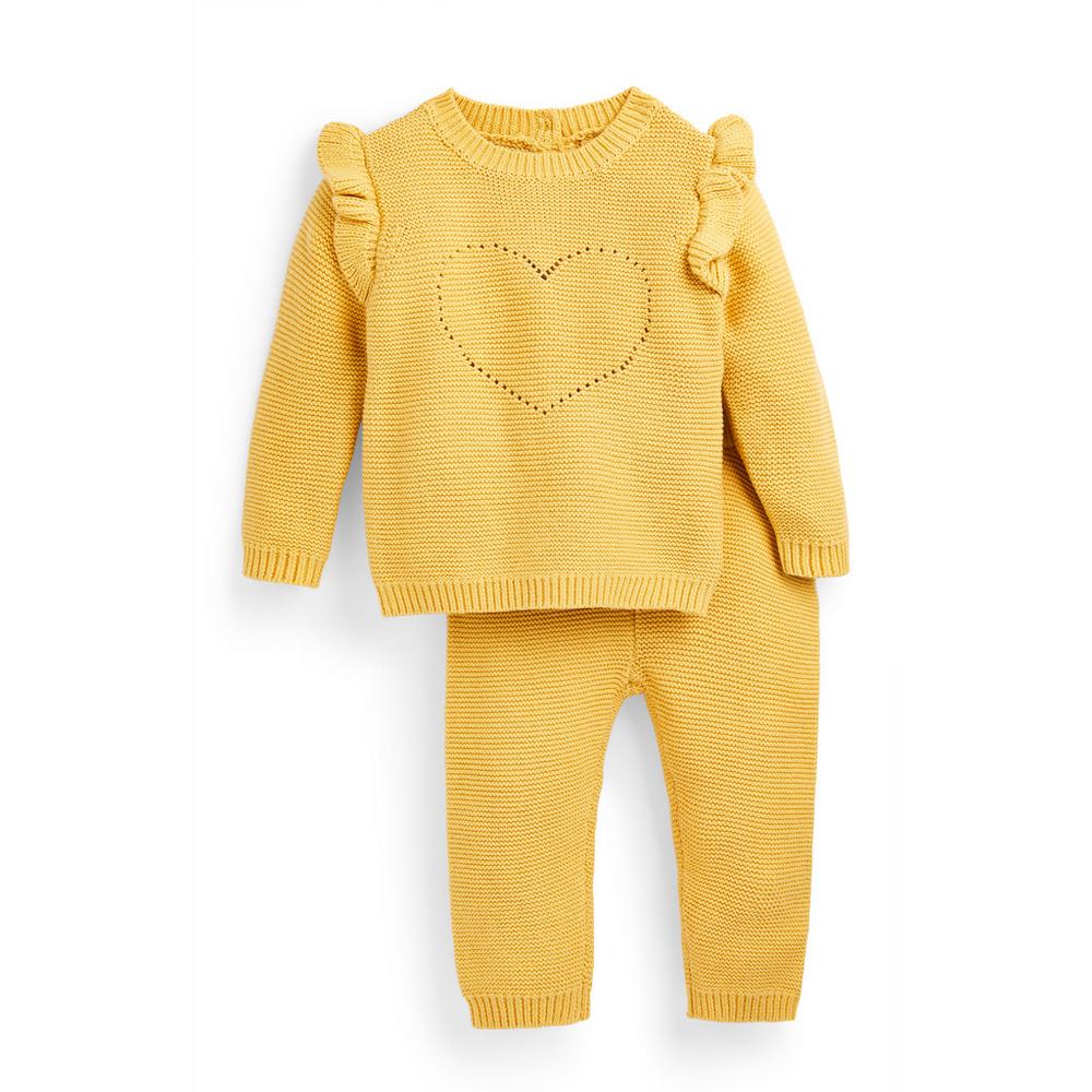 O también conjuntos de punto tan bonitos como este, de color amarillo, perfecto para un bebé niña.