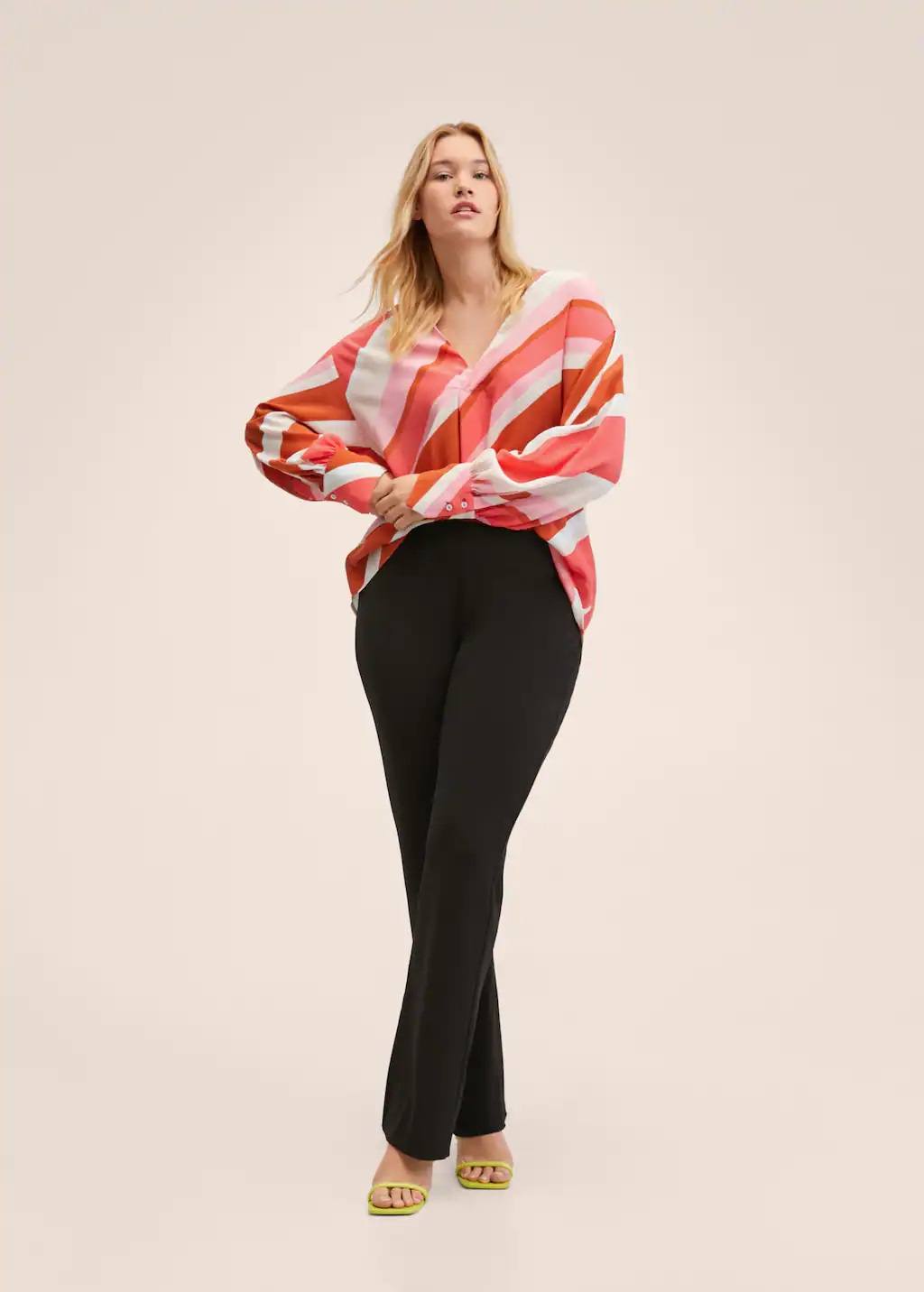 Para las camisas y tops que hemos visto y todos los demás que encontramos dentro del catálogo de Mango para mujer Tallas Plus primavera verano, nada como elegir también los pantalones de la firma. Entre los que más destacan nada como el pantalón culotte fluido o el pantalón con estampado paisley.