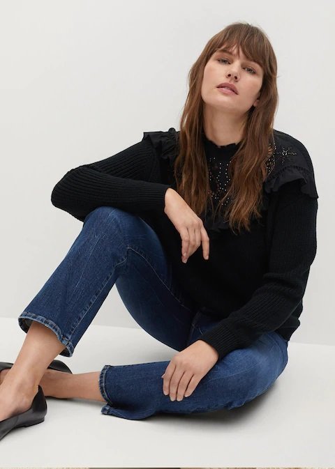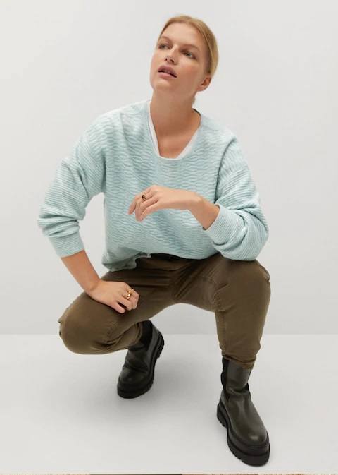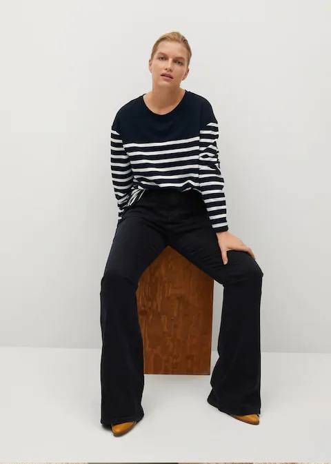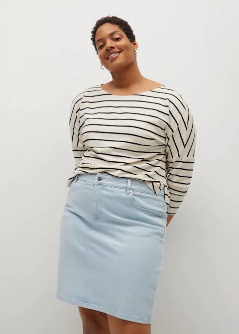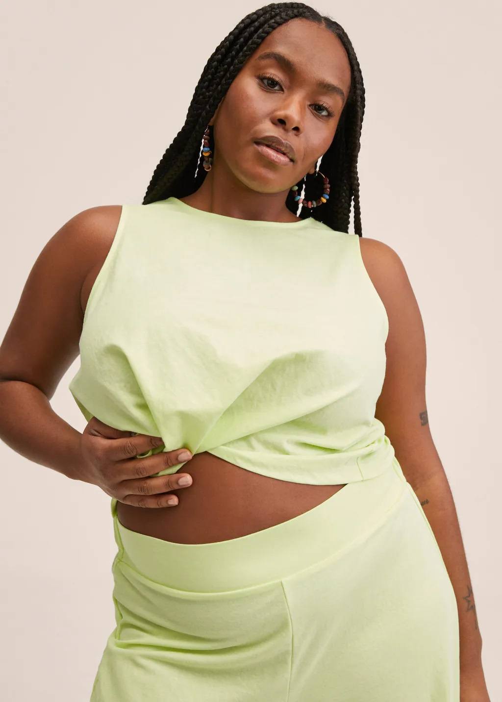 En cuanto a tops, el catálogo de Mango para mujer tallas grandes para primavera verano cuenta con aquellos que marcan tendencia como no podía ser de otra manera. Entre los que no te pueden faltar son el top de canalé en color negro, ideal para combinar tanto con unos jeans como con una falda o también el top crop de punto que es una de las prendas imprescindibles para esta temporada.
