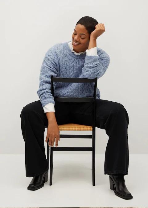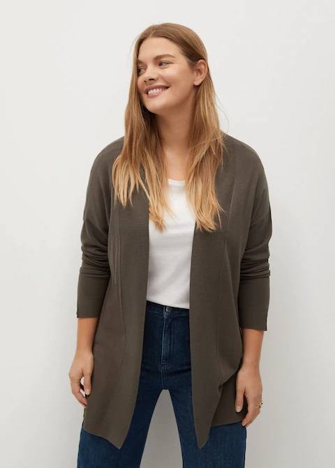 Los jerséis están también muy presentes en el Catálogo de tallas grandes Violeta by Mango para mujer Otoño Invierno con modelos como los jerséis de ochos, los del tipo calado, los que cuentan con estampados que marcan tendencia como el de rayas, pero también las sudaderas y como no, los cardigans que son una prenda de punto esencial cuando llega el frío.