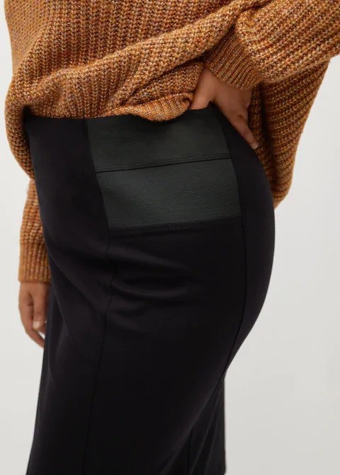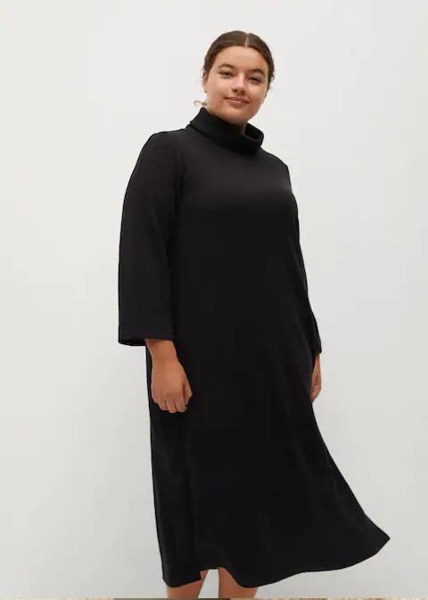 El Catálogo de tallas grandes Violeta by Mango para mujer Otoño Invierno, se llena también de una amplia variedad de vestidos y faldas entre los que sobresalen las propuestas que se presentan con modelos de punto que son muy cómodos y elásticos, además de los modelos en diseño «midi» que son los que más se llevan actualmente.