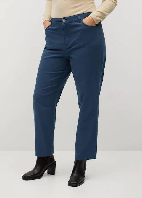 El Catálogo de tallas grandes Violeta by Mango para mujer Otoño Inviernocuenta también con pantalones con una amplia variedad de tallas y modelos entre los que destacan los pantalones del tipo «slim fit», los de estampado de cuadros o pata de gallo y también como no, los tejanos que se presentan con diseño elástico.