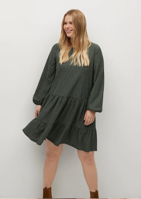 Entre esas novedades del catálogo de Mango de Tallas Plus primavera verano, no podemos pasar por alto los vestidos, con modelos que destacan por sus estampados fluidos y muy de estilo «años 60» o «años 70», o también los vestidos de estilo barroco.