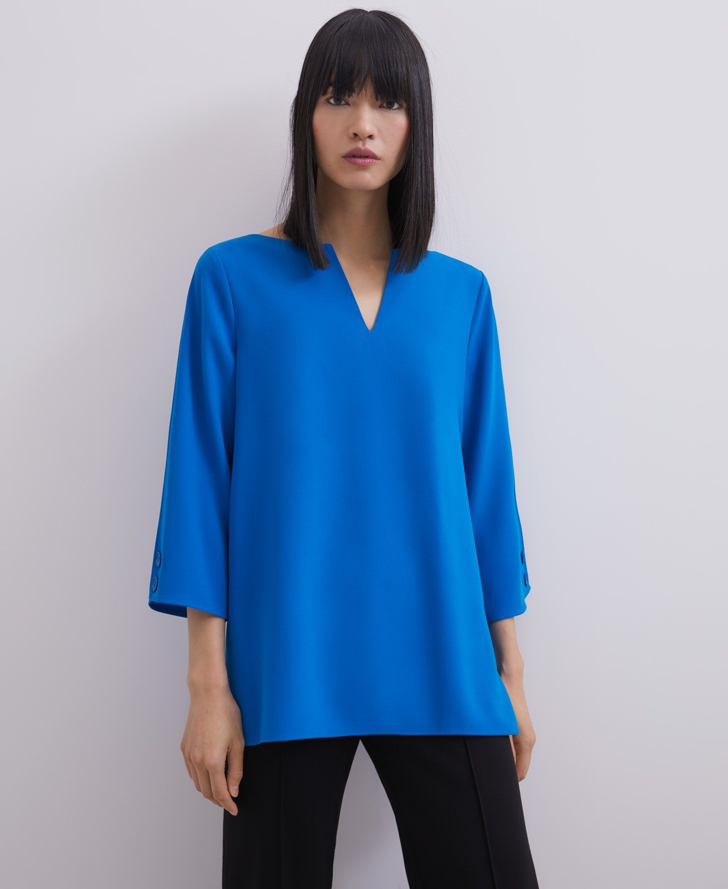 Los tops que cuentan con detalles especiales en las mangas, son también protagonistas en la nueva colección de Adolfo Domínguez para verano y resultan además perfectos para grandes ocasiones o también para salir de fiesta. Además, los podemos encontrar en algunos de los colores más llamativos y más de moda de la temporada, tal y como son el rojo, el azul o el púrpura.